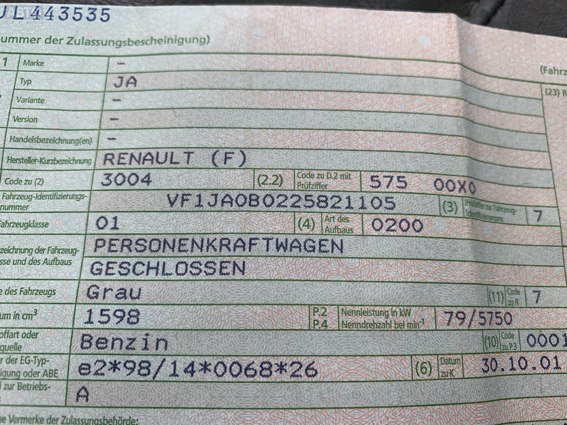 | Марка / Модель / Год: | Renault Scenic I (1996-2003) 2001 |