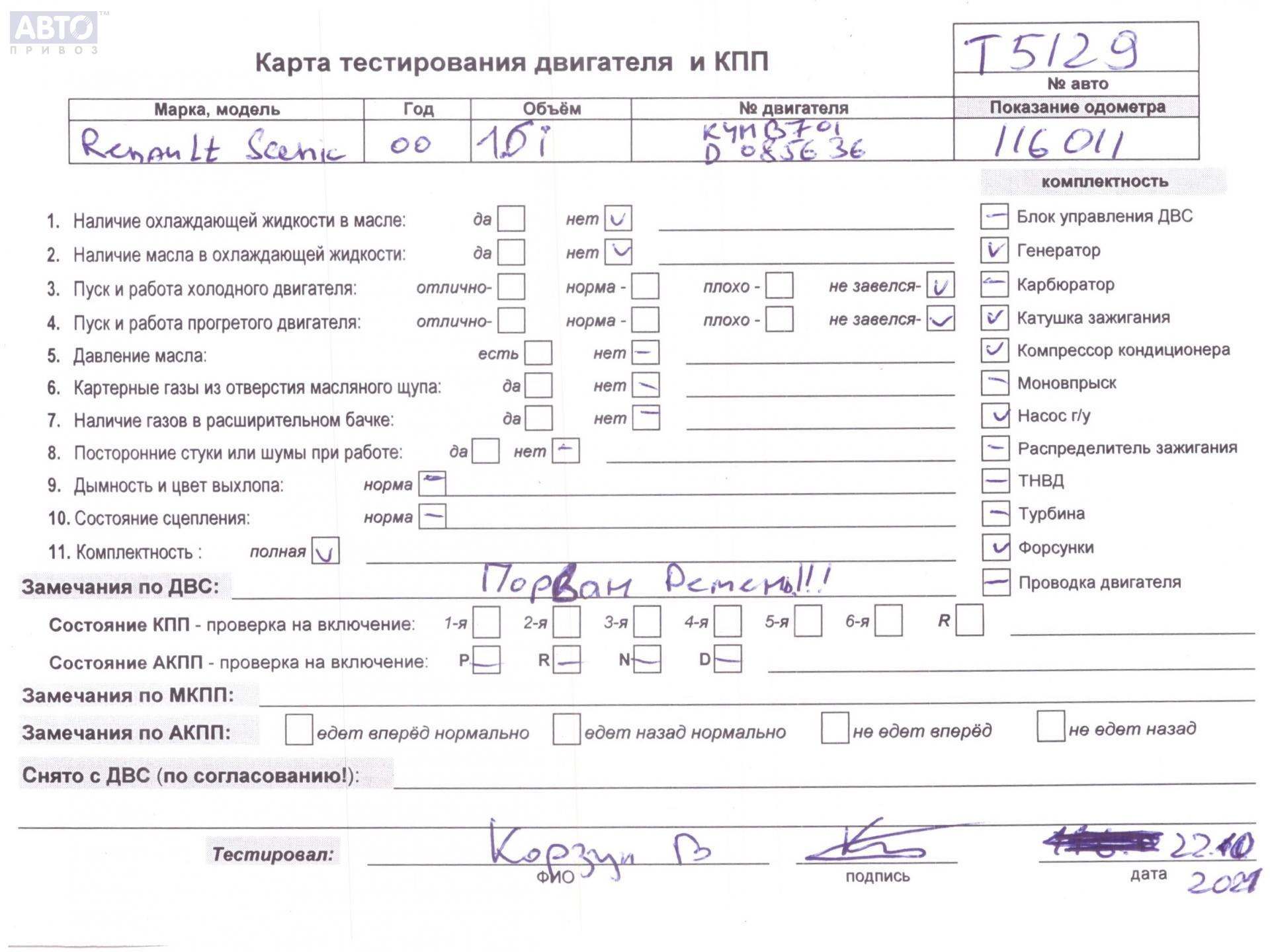 | Автомобиль / VIN: | T5129 VF1JA0B0225821105 |