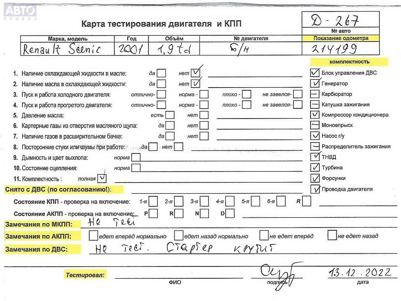 | Марка / Модель / Год: | Renault Scenic I (1996-2003) 2001 |