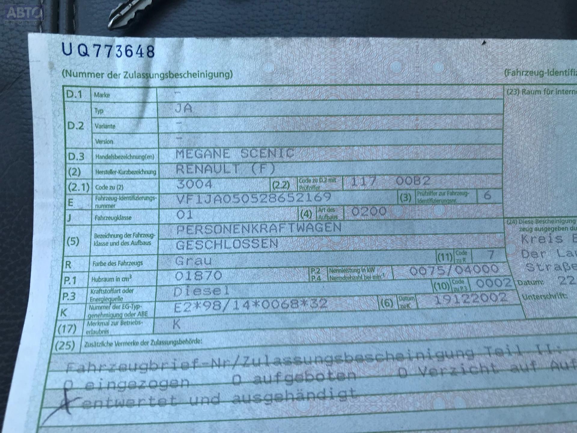 | Марка / Модель / Год: | Renault Scenic I (1996-2003) 2003 |