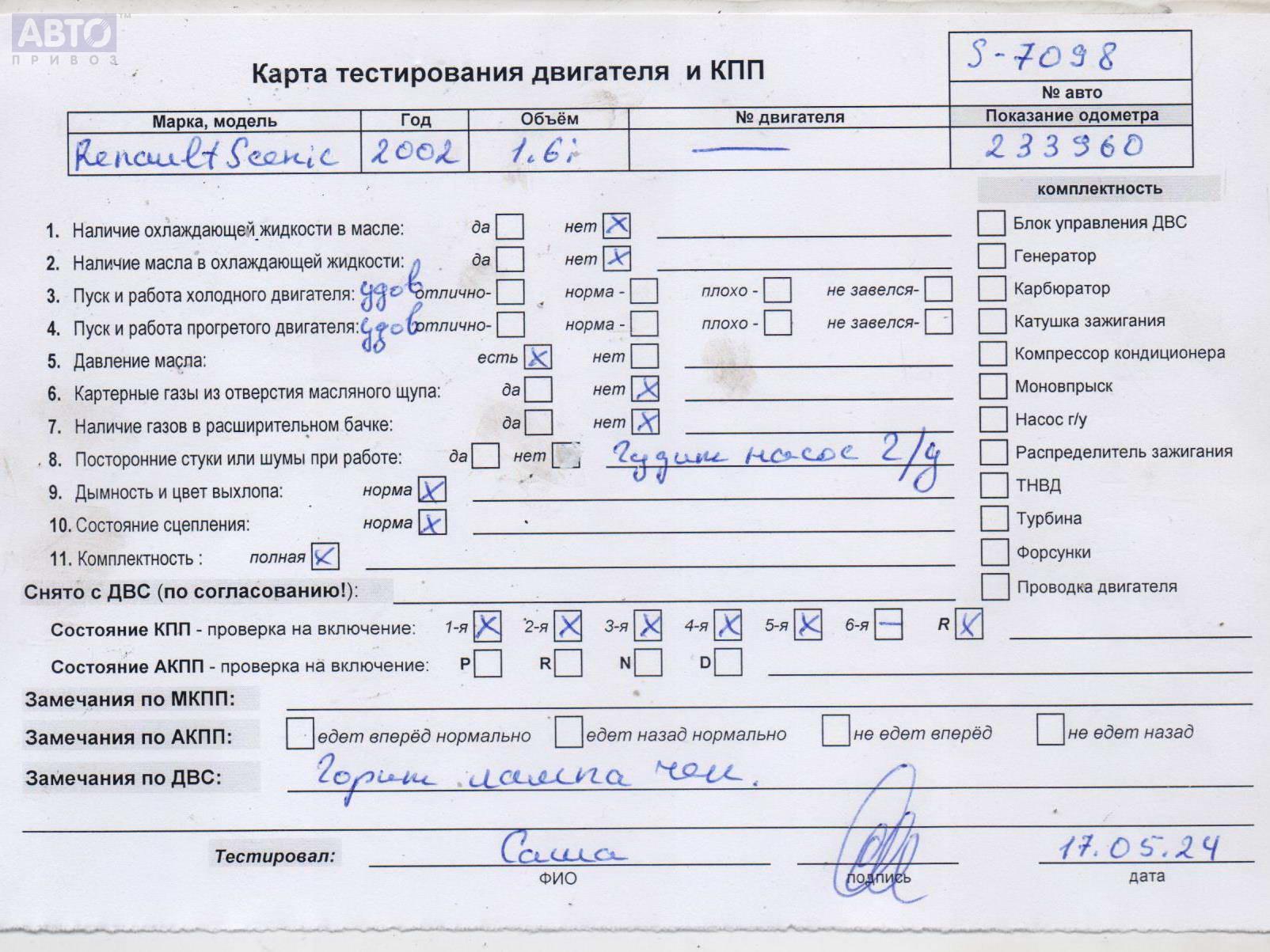 | Марка / Модель / Год: | Renault Scenic I (1996-2003) 2002 |