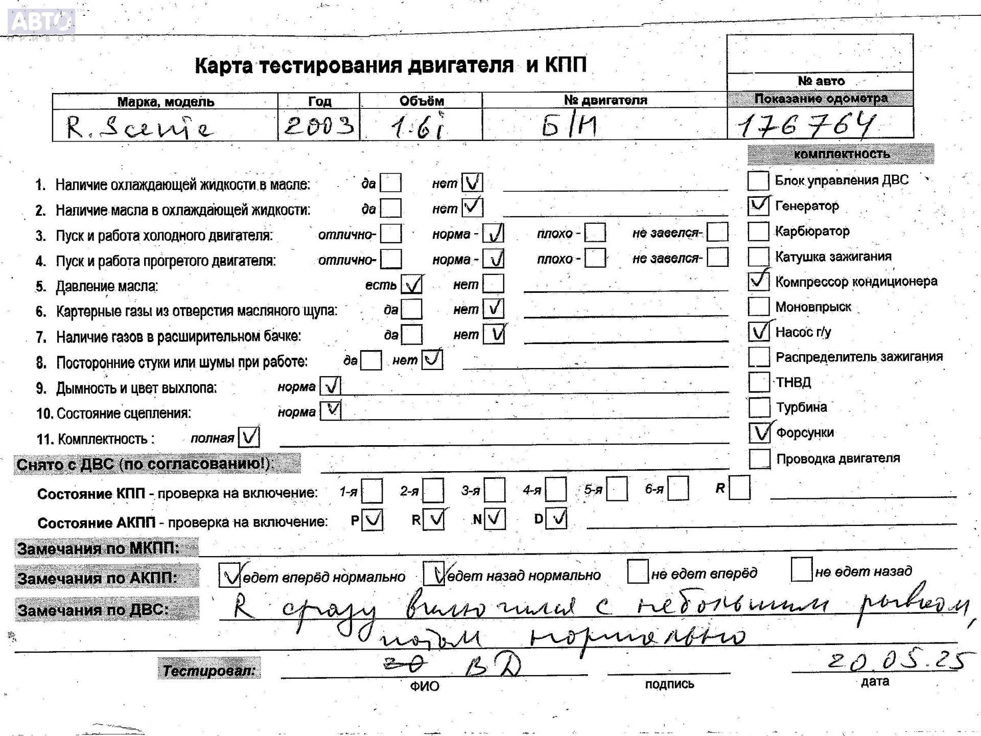 | Марка / Модель / Год: | Renault Scenic I (1996-2003) 2003 |
