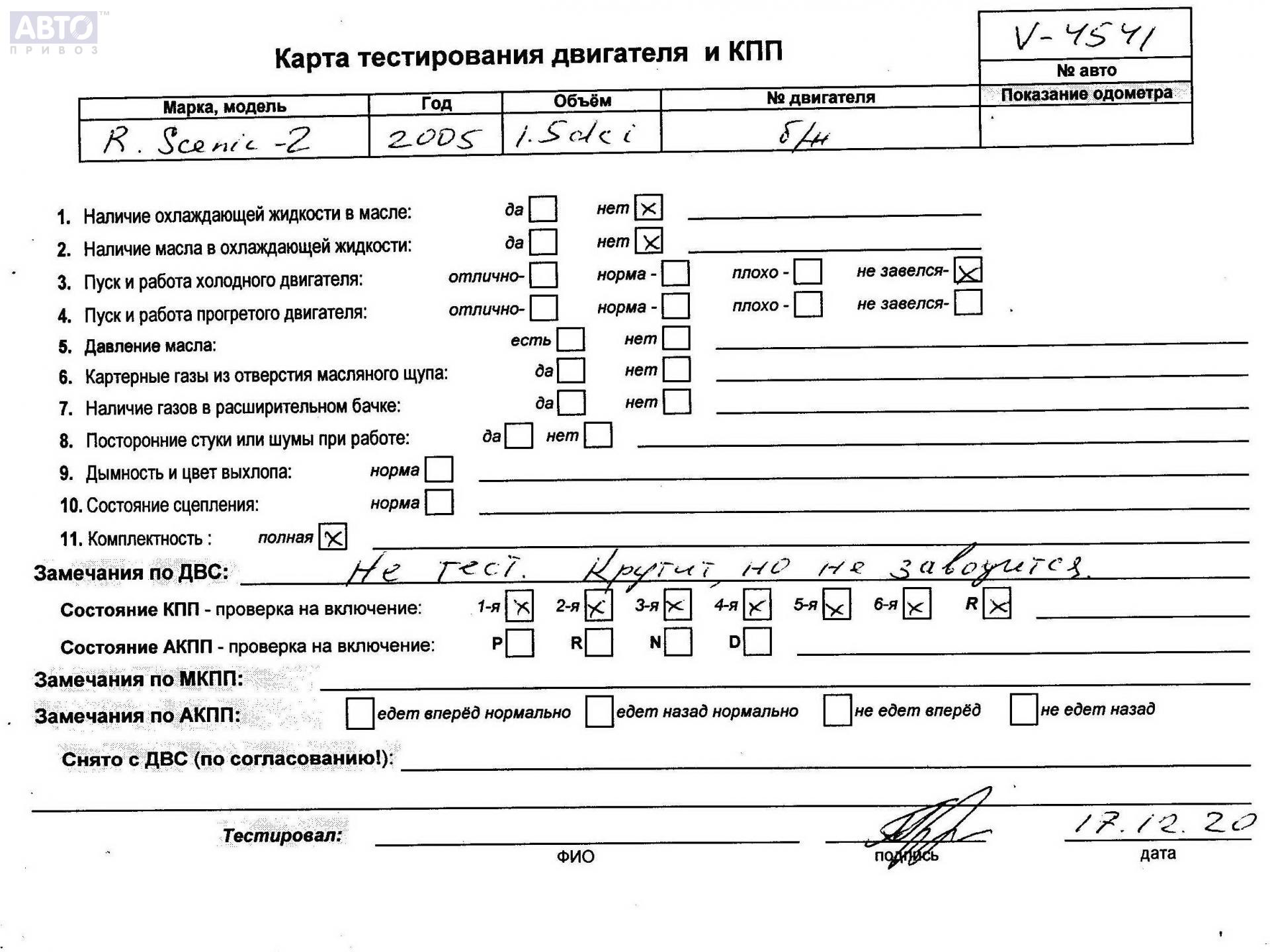 | Марка / Модель / Год: | Renault Scenic II (2003-2009) 2005 |