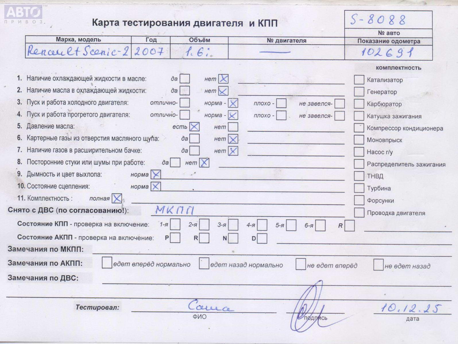 | Марка / Модель / Год: | Renault Scenic II (2003-2009) 2007 |