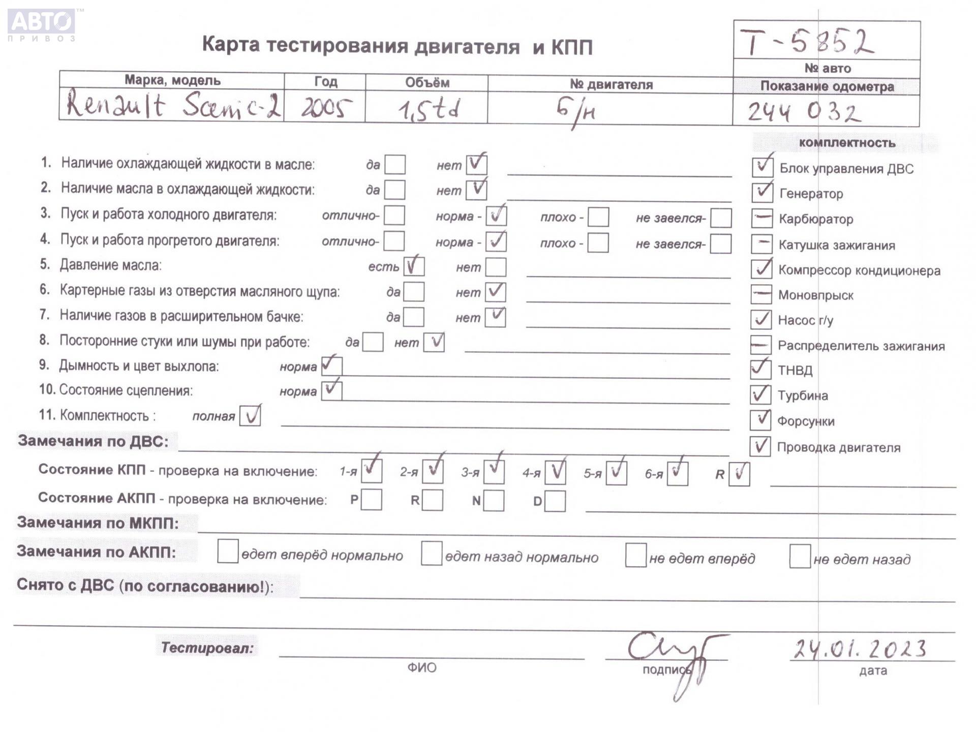| Марка / Модель / Год: | Renault Scenic II (2003-2009) 2005 |