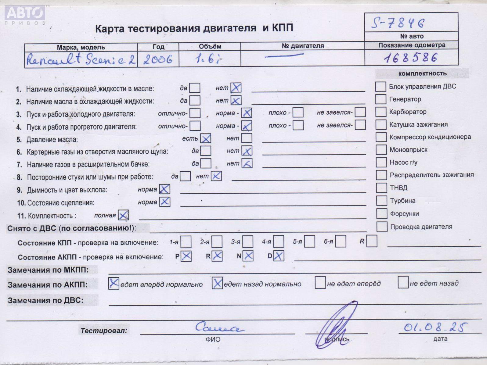 | Марка / Модель / Год: | Renault Scenic II (2003-2009) 2006 |