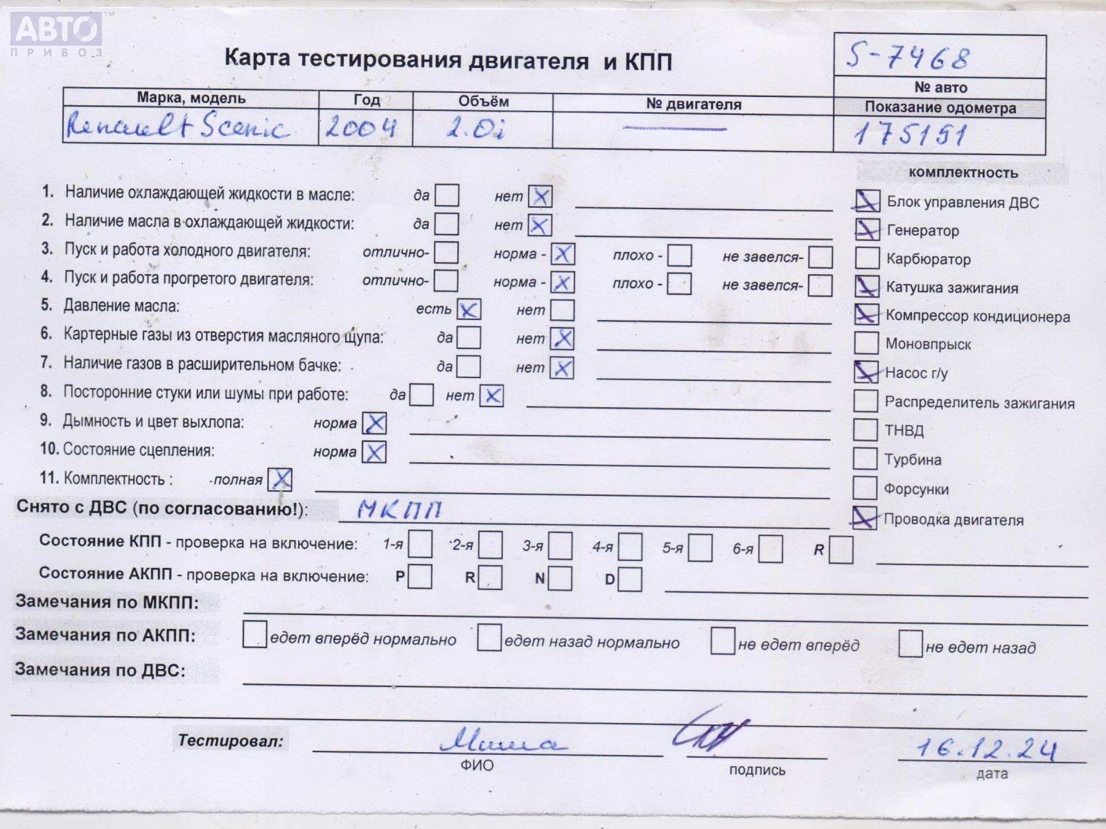 | Марка / Модель / Год: | Renault Scenic II (2003-2009) 2004 |