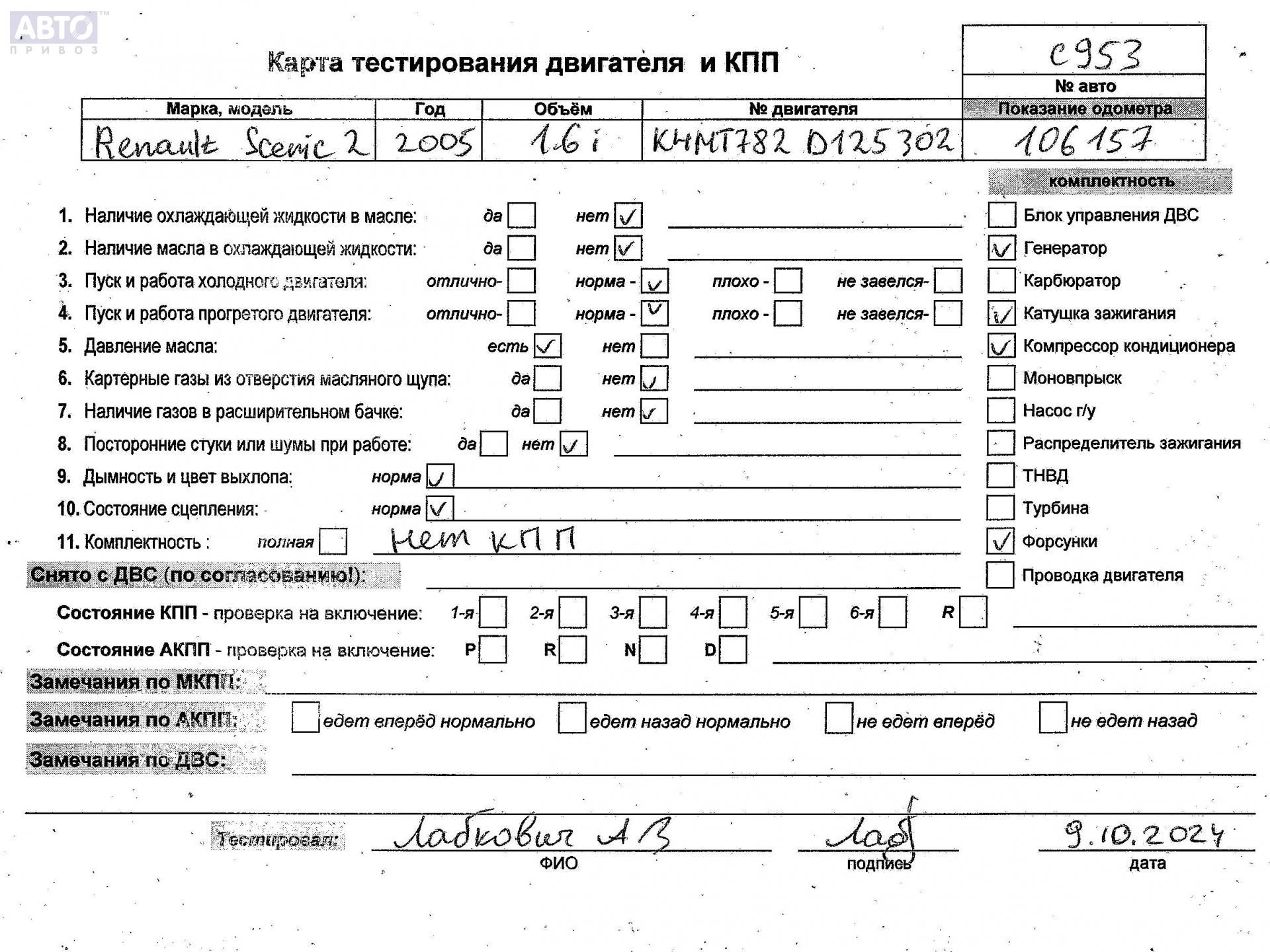 | Марка / Модель / Год: | Renault Scenic II (2003-2009) 2005 |