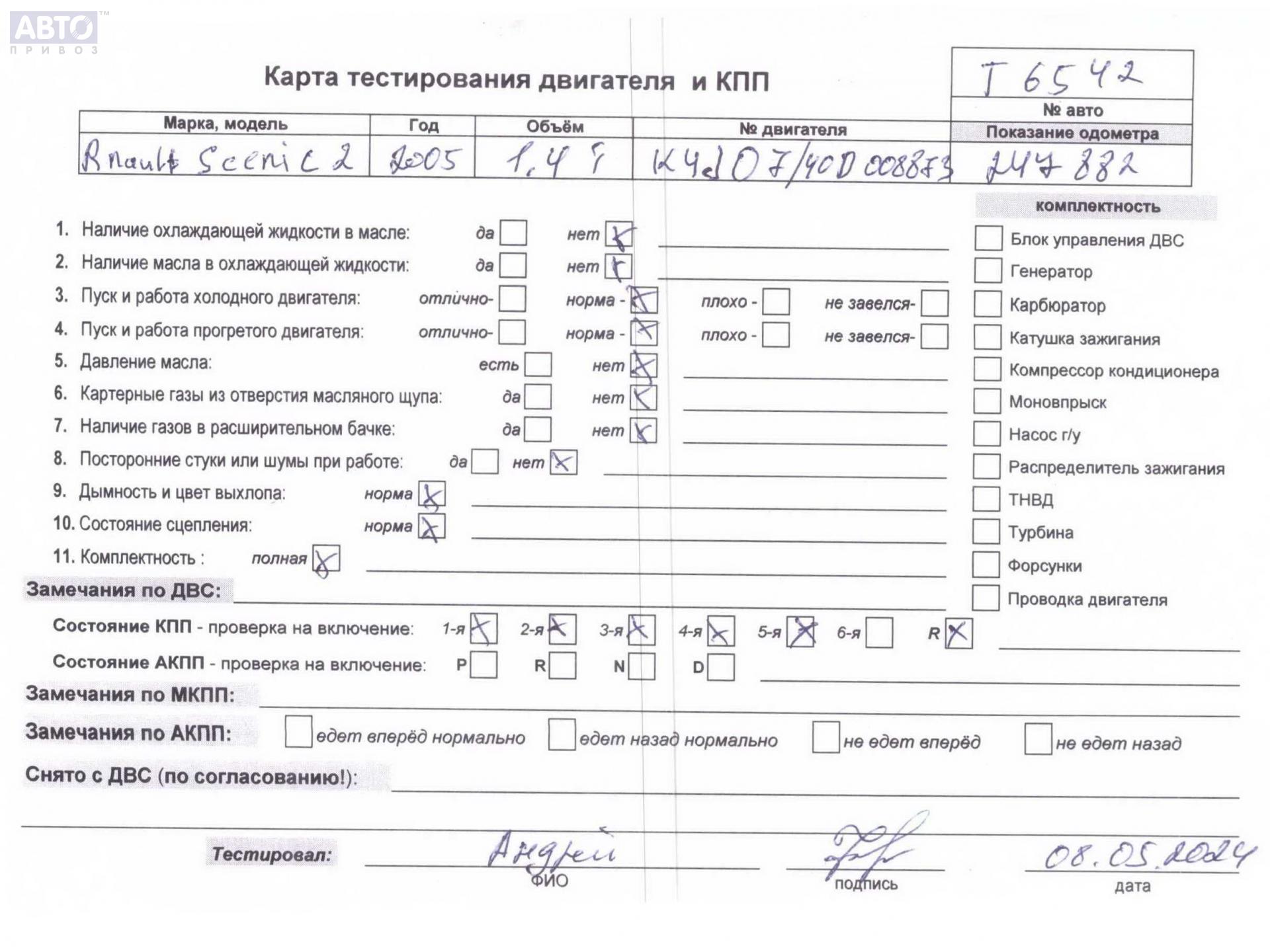 | Марка / Модель / Год: | Renault Scenic II (2003-2009) 2006 |