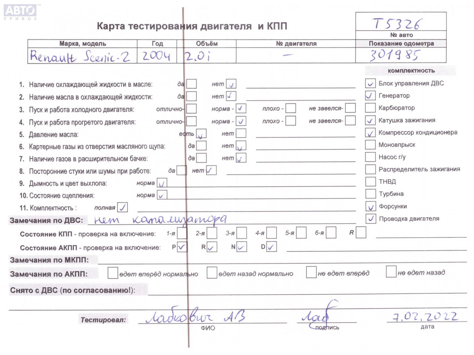 | Марка / Модель / Год: | Renault Scenic II (2003-2009) 2004 |