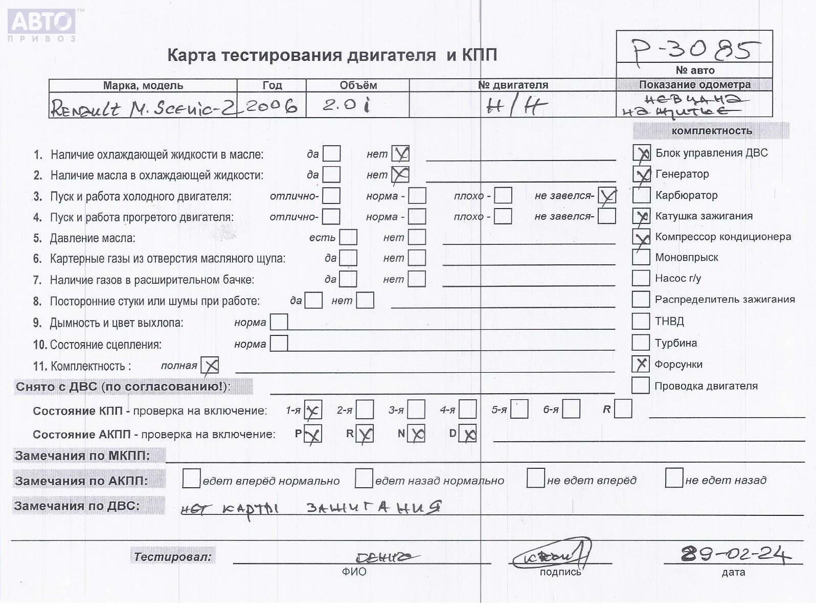| Марка / Модель / Год: | Renault Scenic II (2003-2009) 2006 |