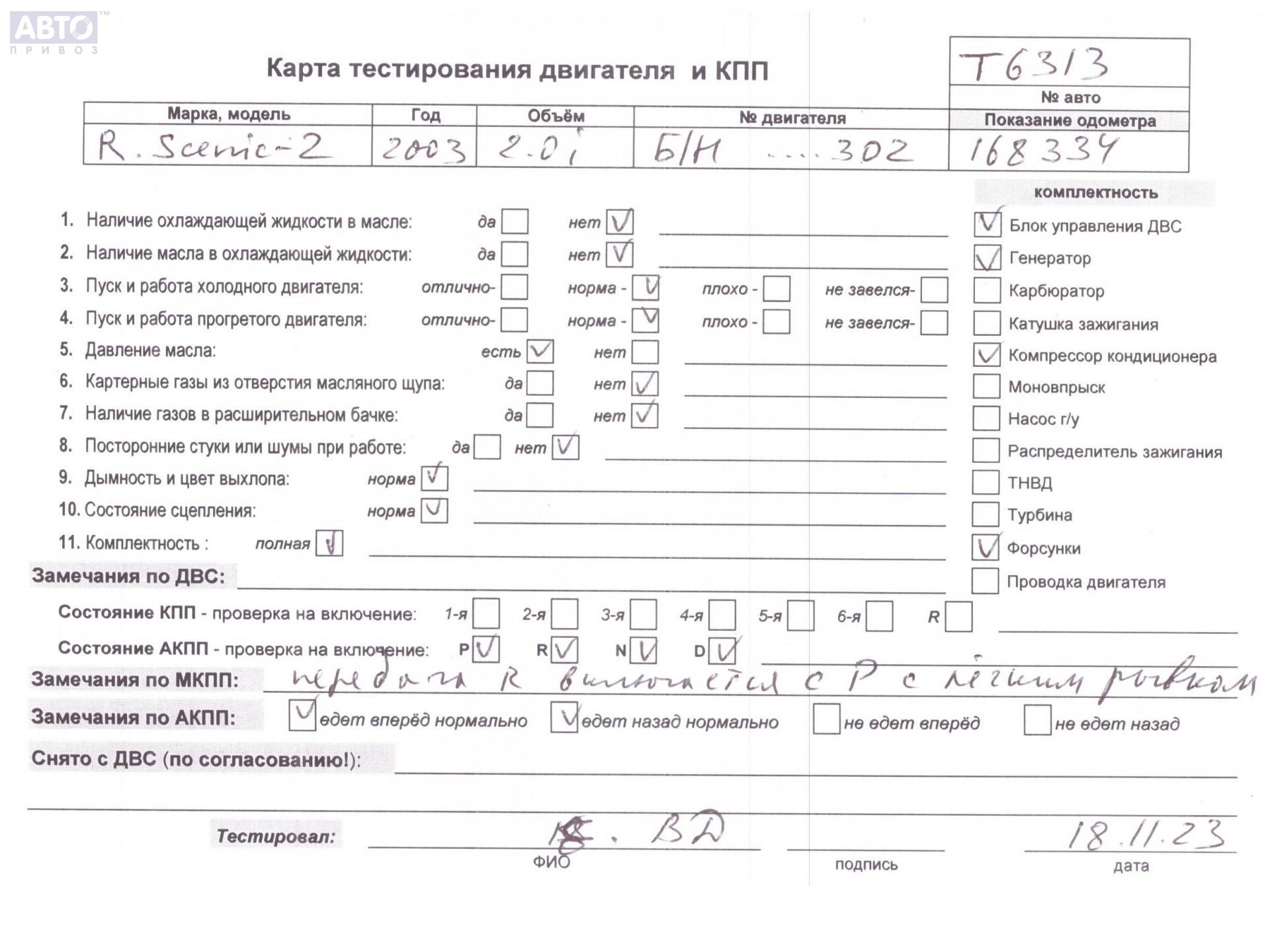 | Марка / Модель / Год: | Renault Scenic II (2003-2009) 2003 |