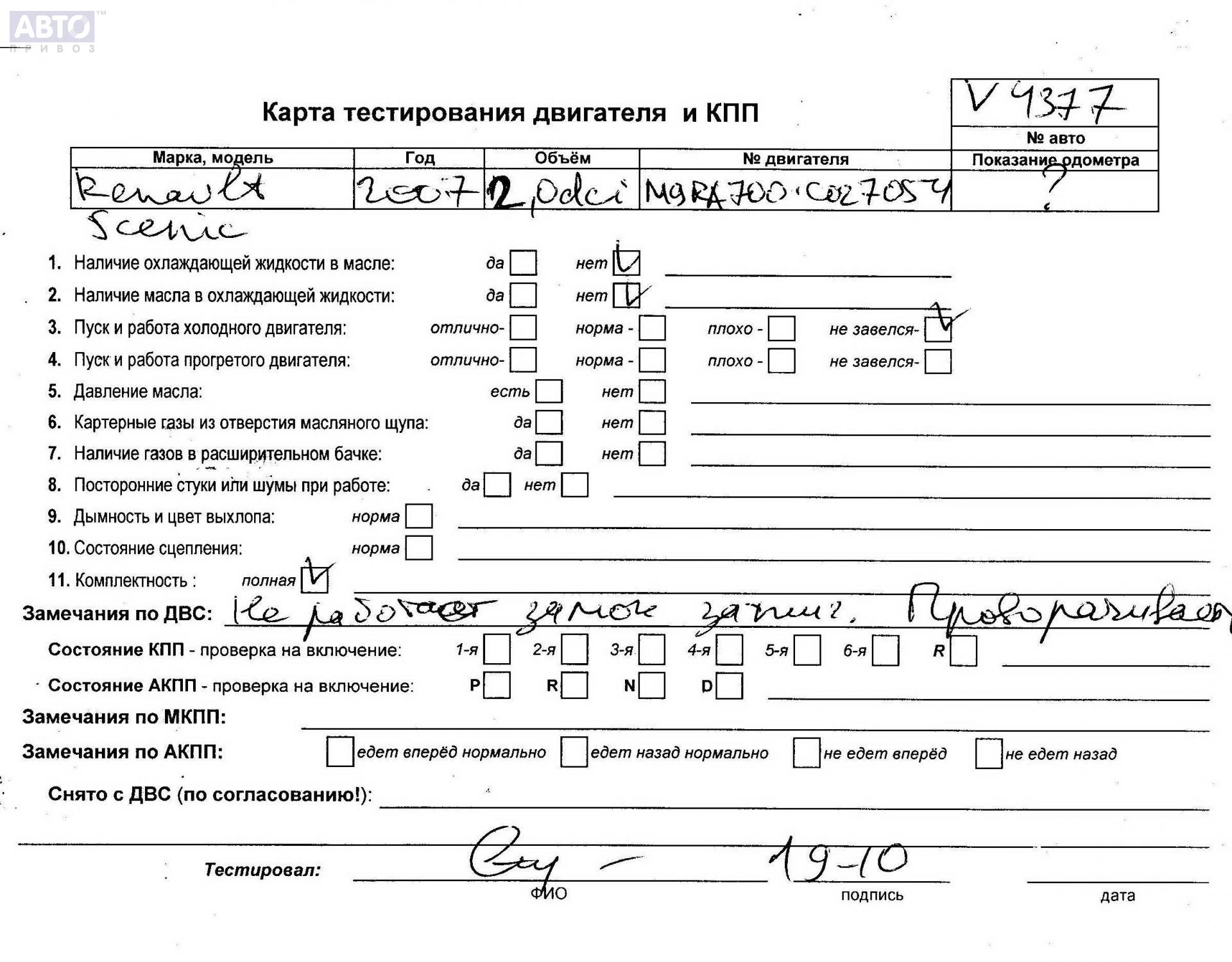 | Автомобиль / VIN: | V4377 VF1JMGKD637910615 |