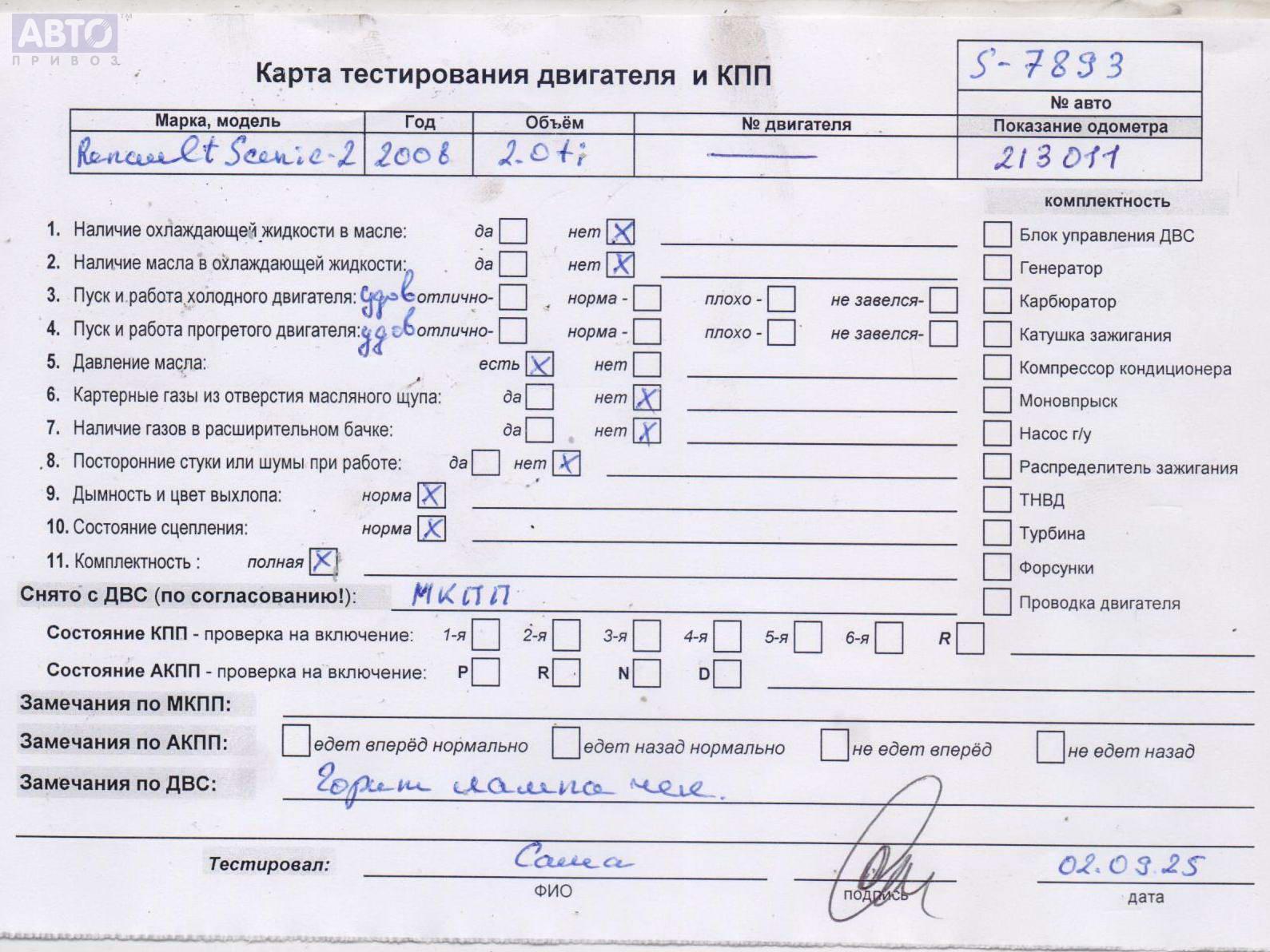 | Марка / Модель / Год: | Renault Scenic II (2003-2009) 2008 |