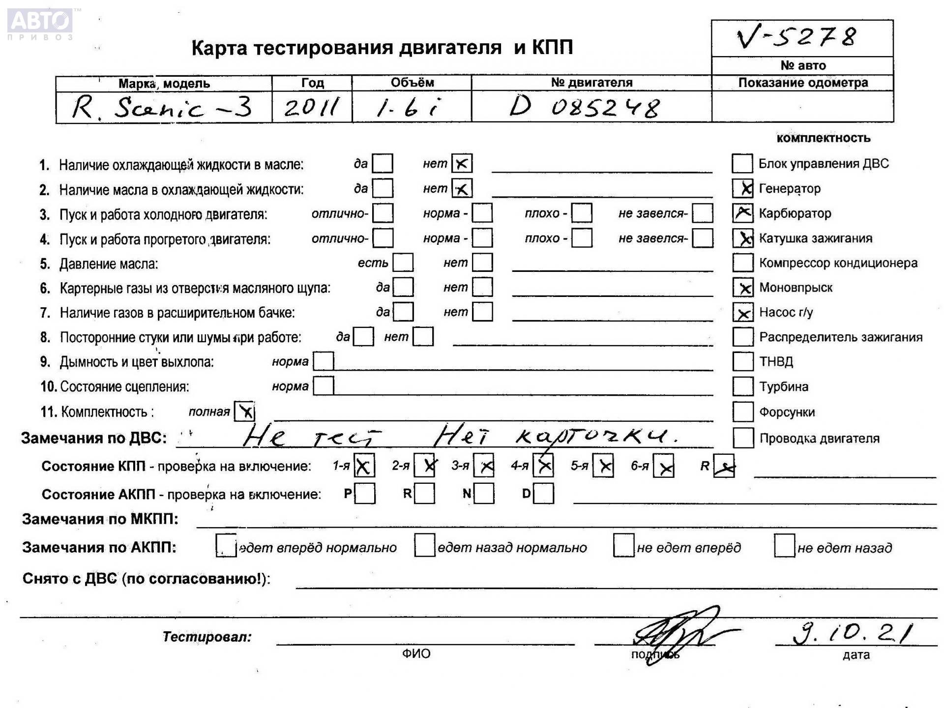 | Автомобиль / VIN: | V5278 VF1JZ1U0644791308 |