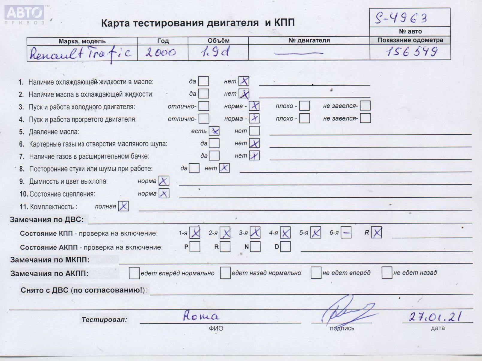 | Марка / Модель / Год: | Renault Trafic (1981-2000) 2000 |