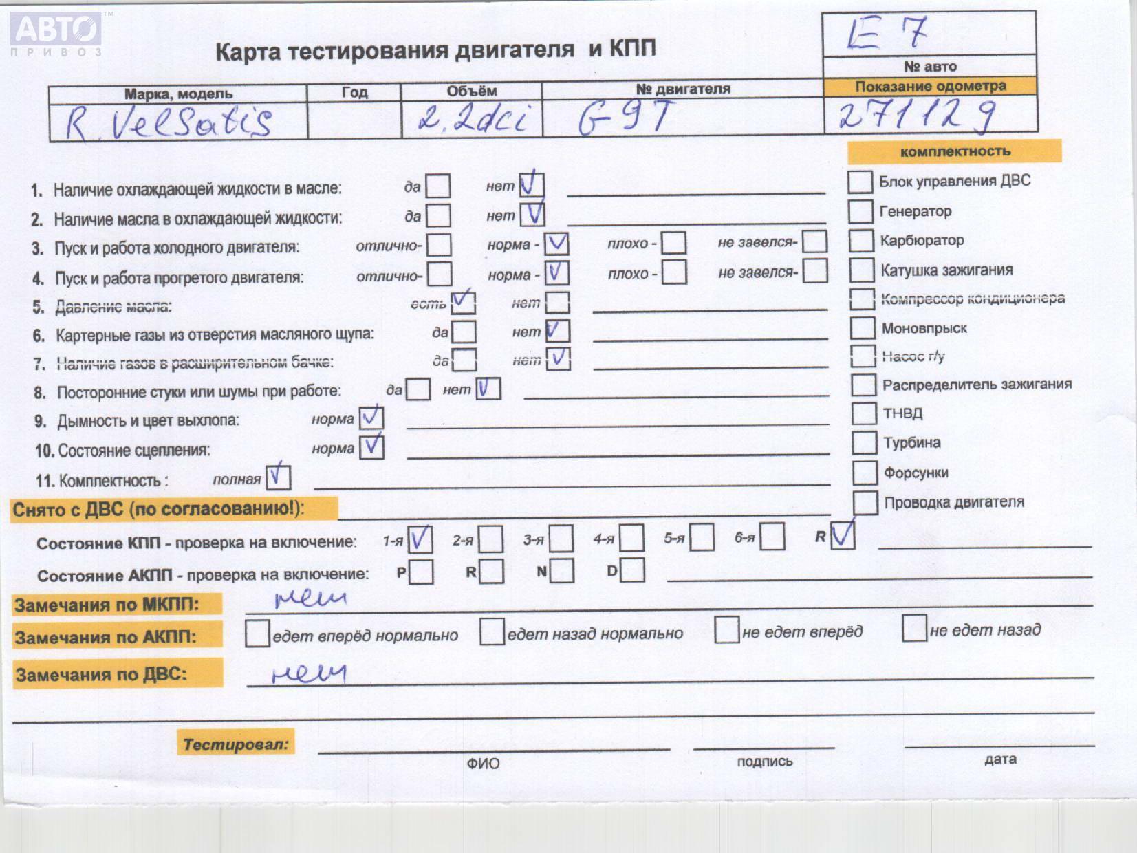 | Марка / Модель / Год: | Renault Vel Satis 2003 |