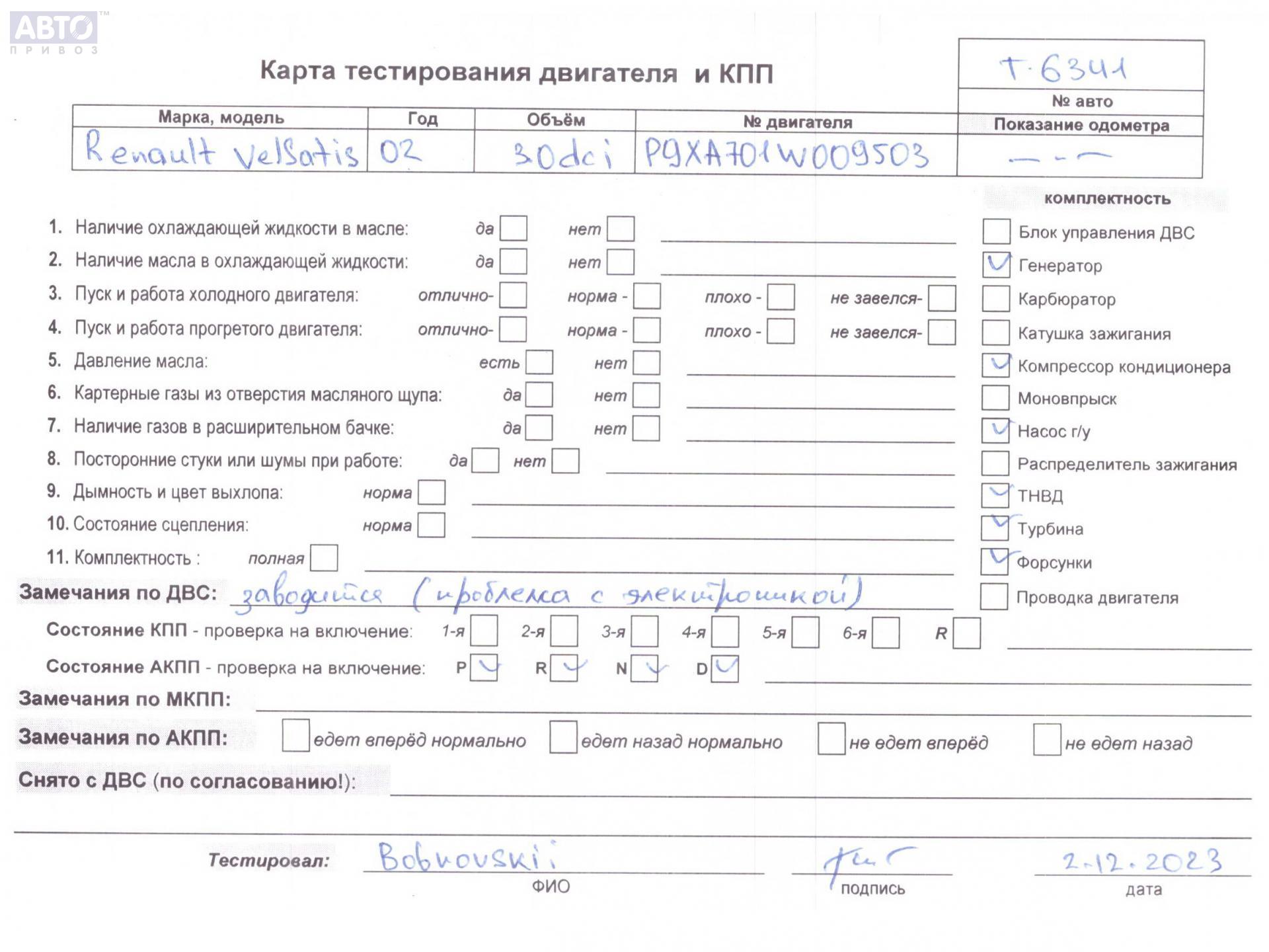 | Автомобиль / VIN: | T6341 VF1BJ0J0B26274301 |
