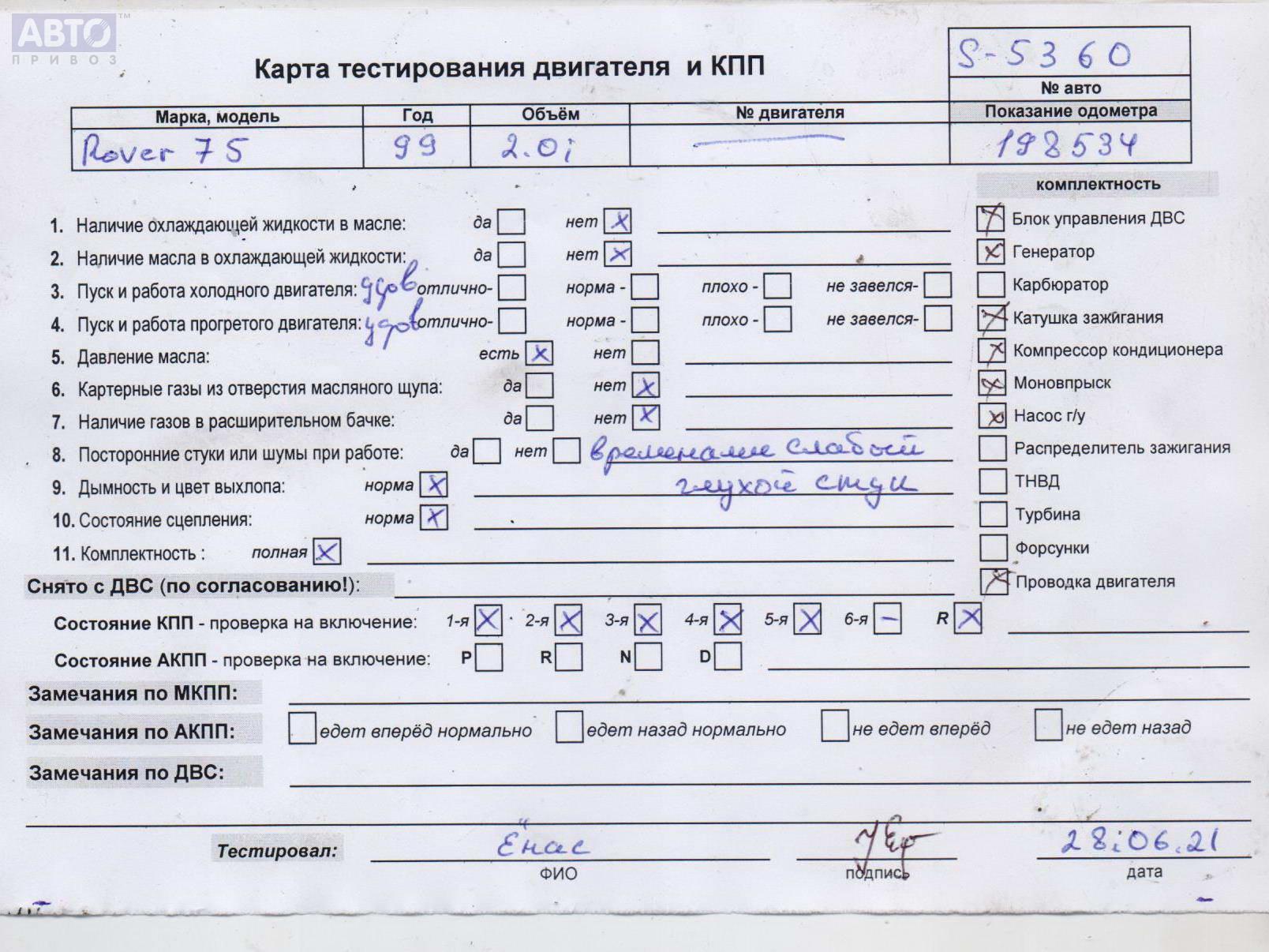 | Марка / Модель / Год: | Rover 75 1999 |