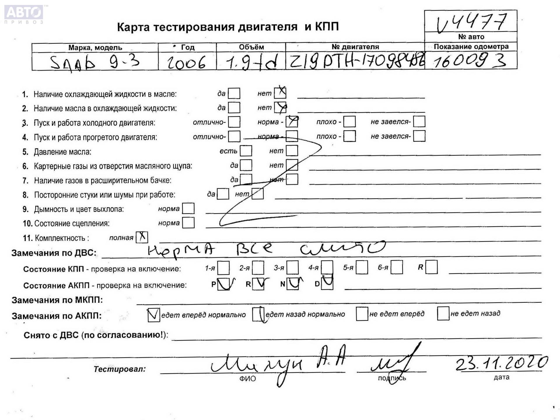 | Автомобиль / VIN: | V4477 YS3FF51W661121426 |