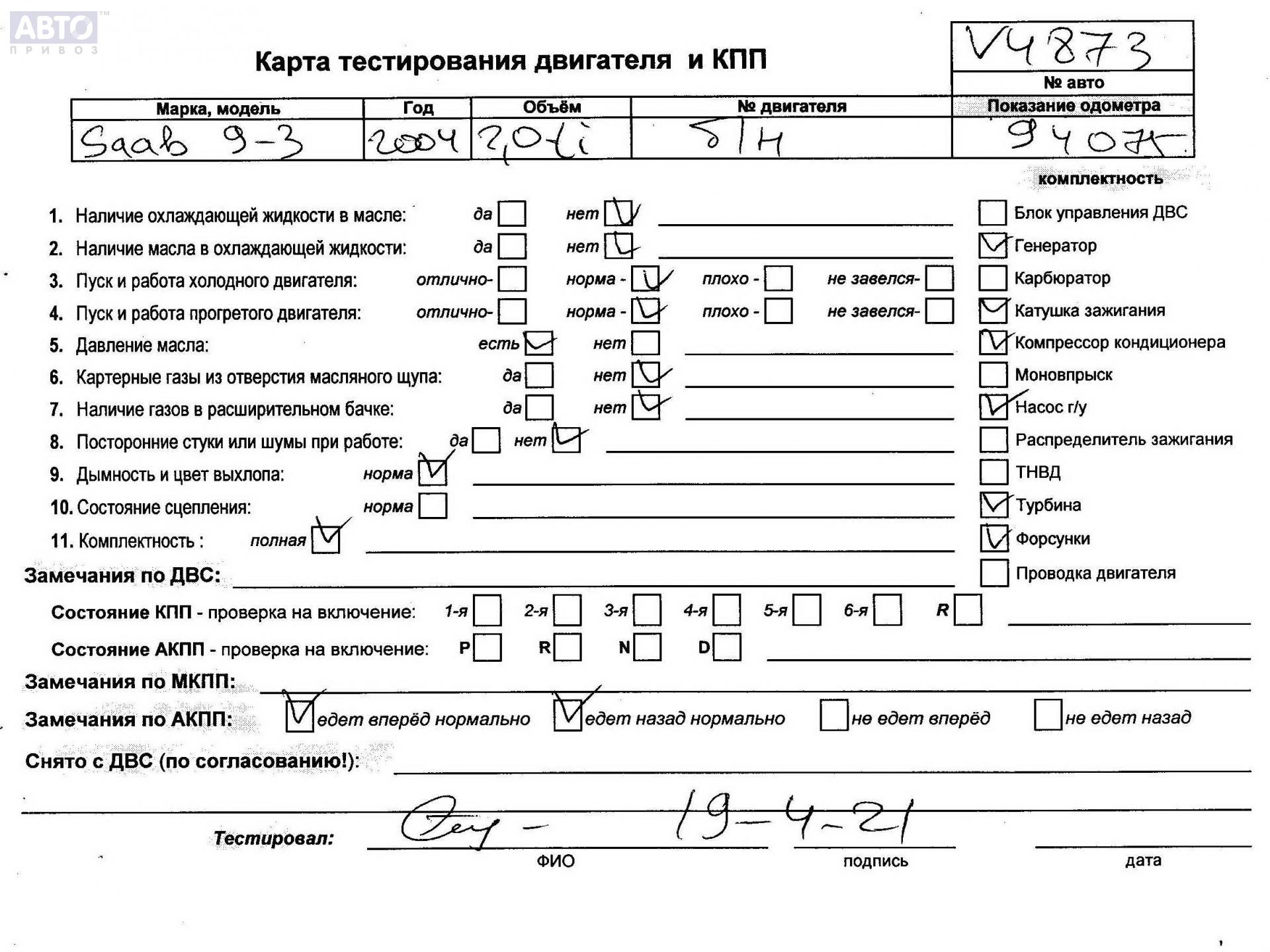 | Автомобиль / VIN: | V4873 YS3FF49S941052837 |