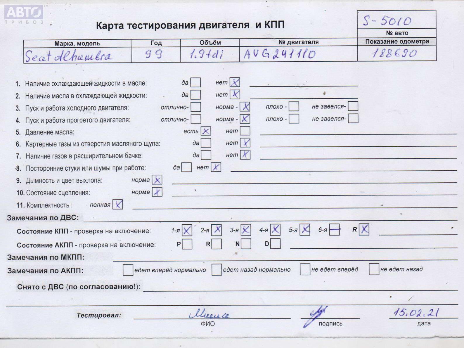 | Марка / Модель / Год: | Seat Alhambra (1996-2000) 1999 |
