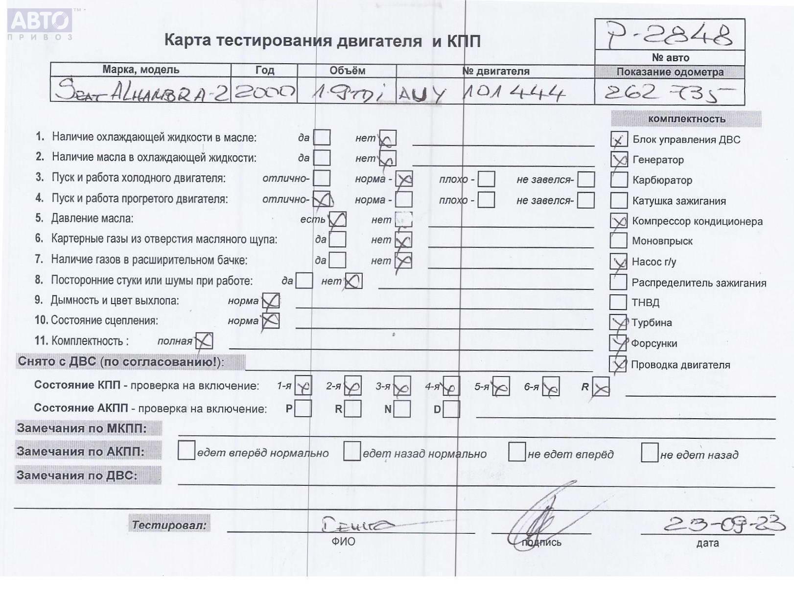 | Автомобиль / VIN: | P2848 VSSZZZ7MZ1V524765 |