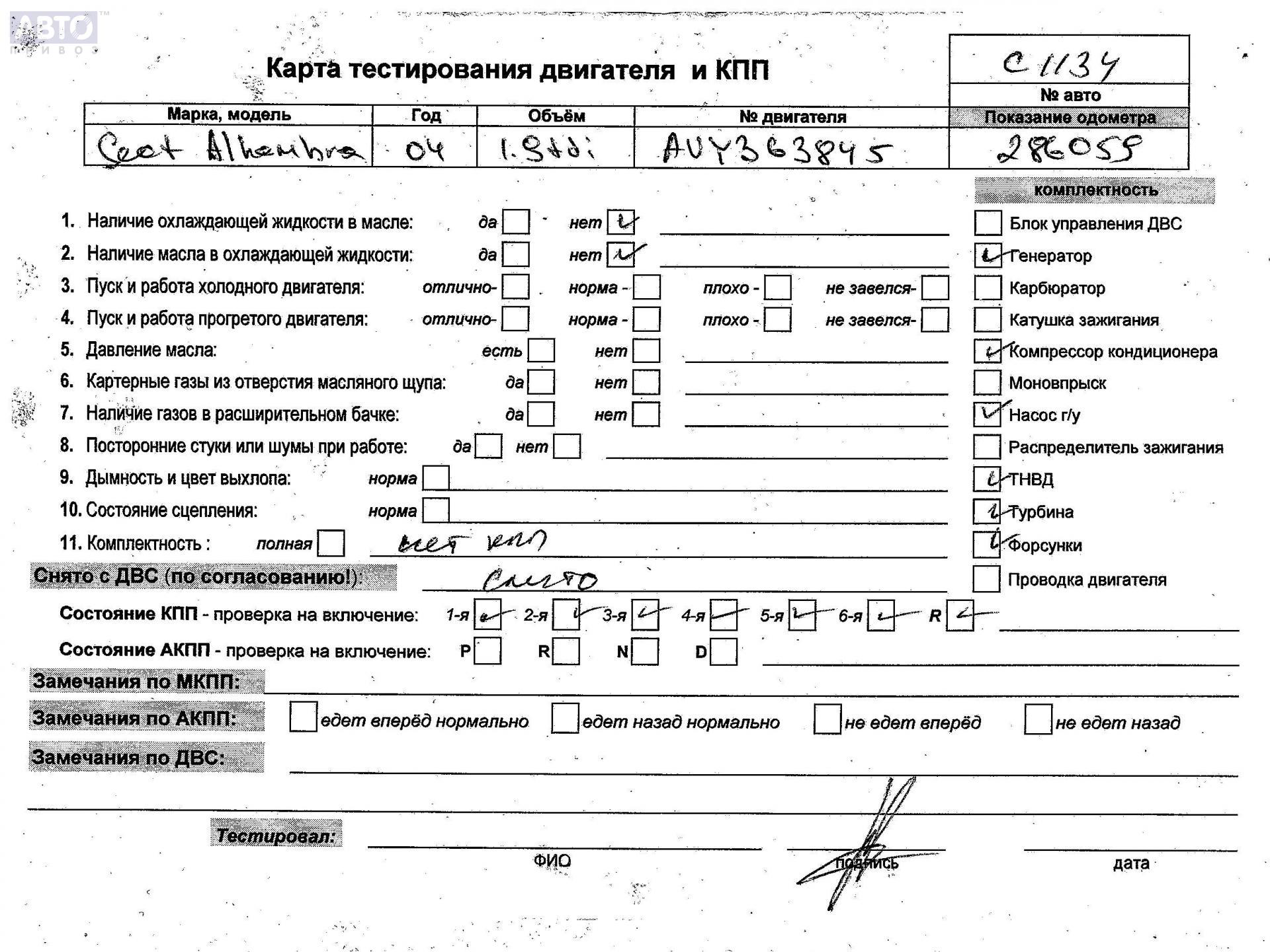 | Марка / Модель / Год: | Seat Alhambra (2000-2010) 2004 |