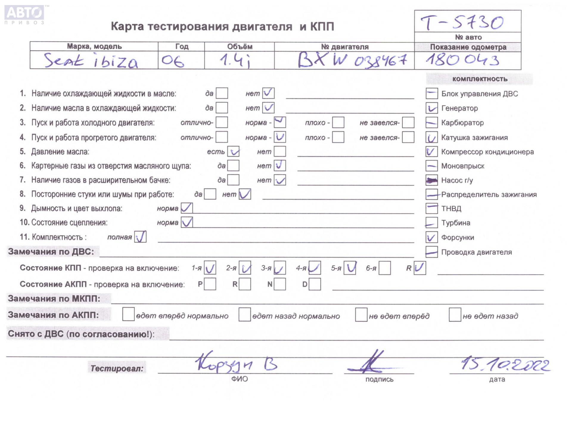 | Марка / Модель / Год: | Seat Ibiza (2002-2008) 2006 |