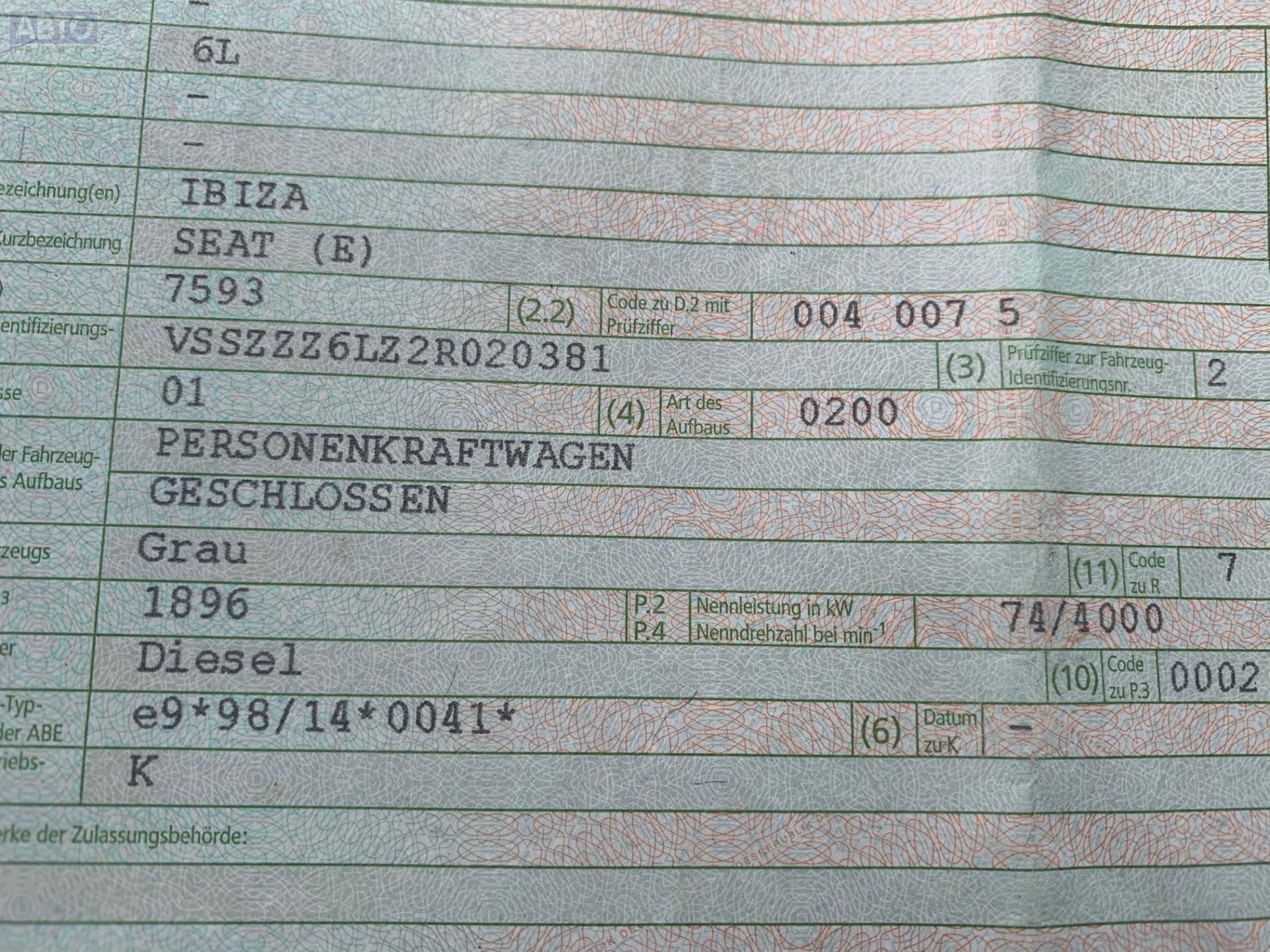 | Марка / Модель / Год: | Seat Ibiza (2002-2008) 2002 |