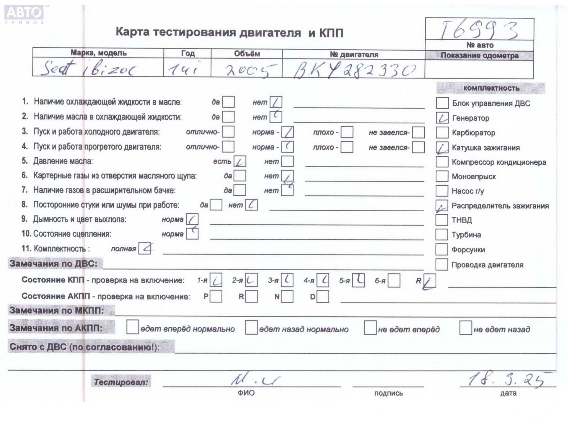 | Марка / Модель / Год: | Seat Ibiza (2002-2008) 2005 |
