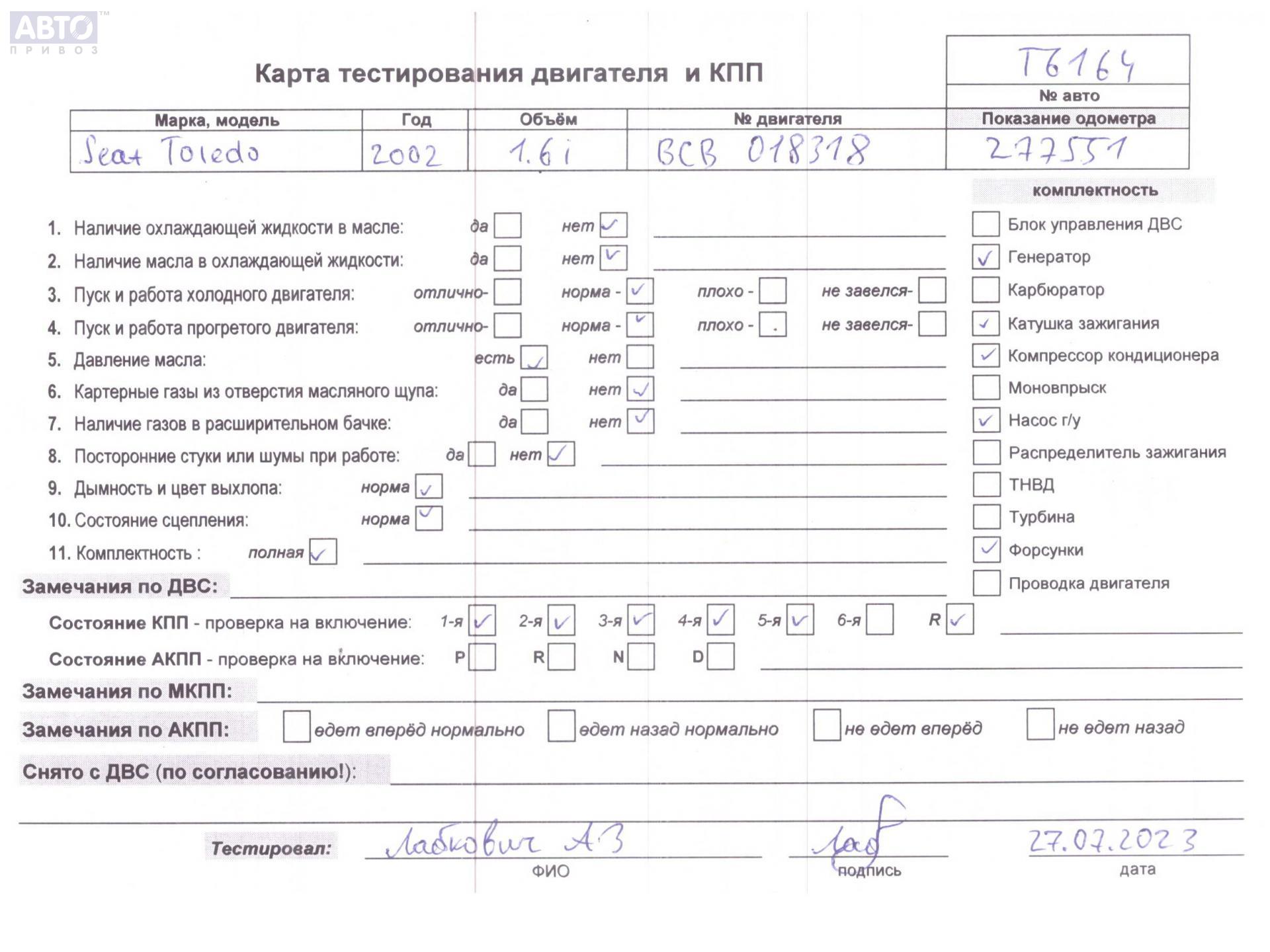 | Марка / Модель / Год: | Seat Toledo (1999-2004) 2002 |
