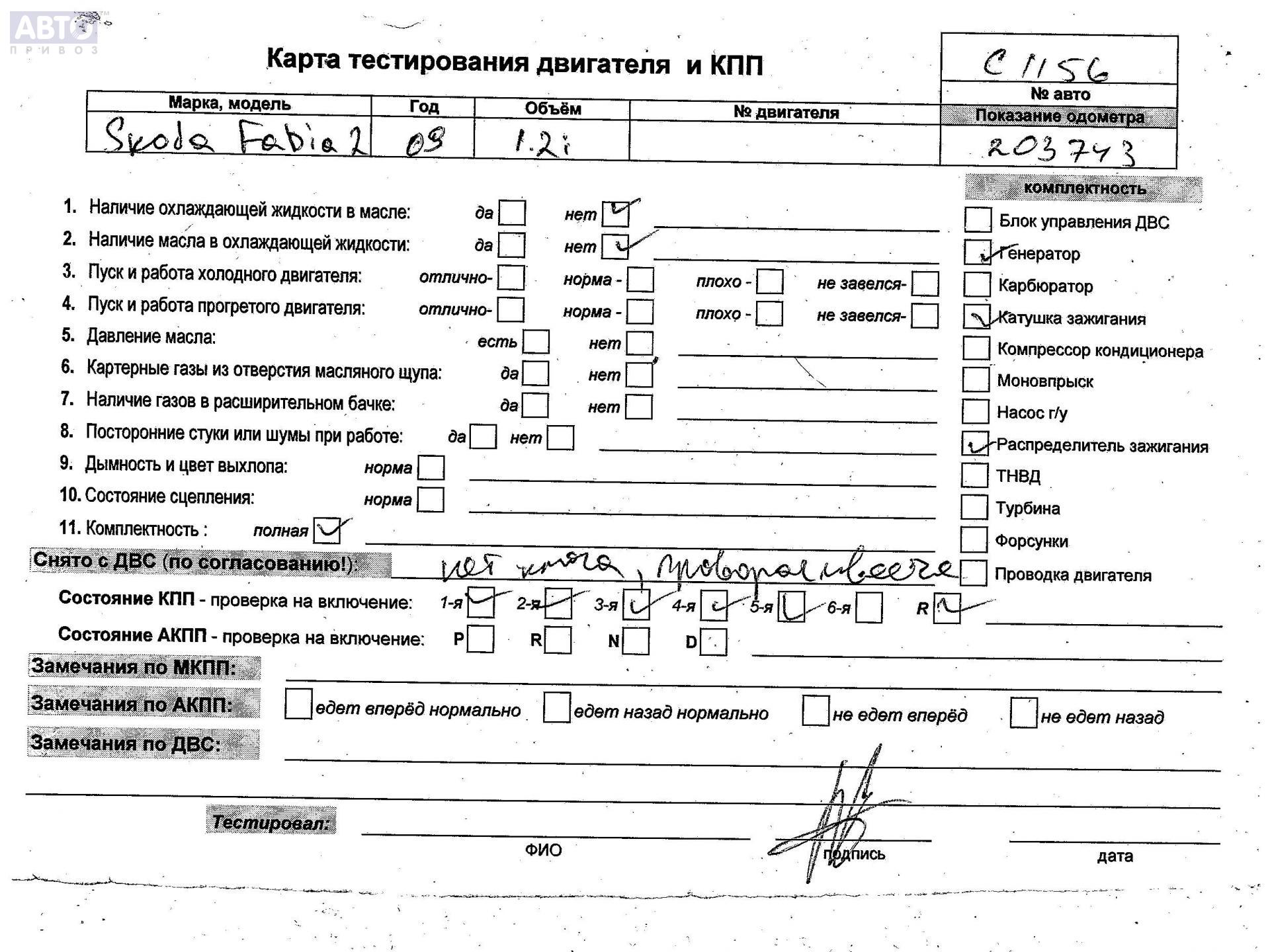 | Марка / Модель / Год: | Skoda Fabia mk2 (5J) 2009 |