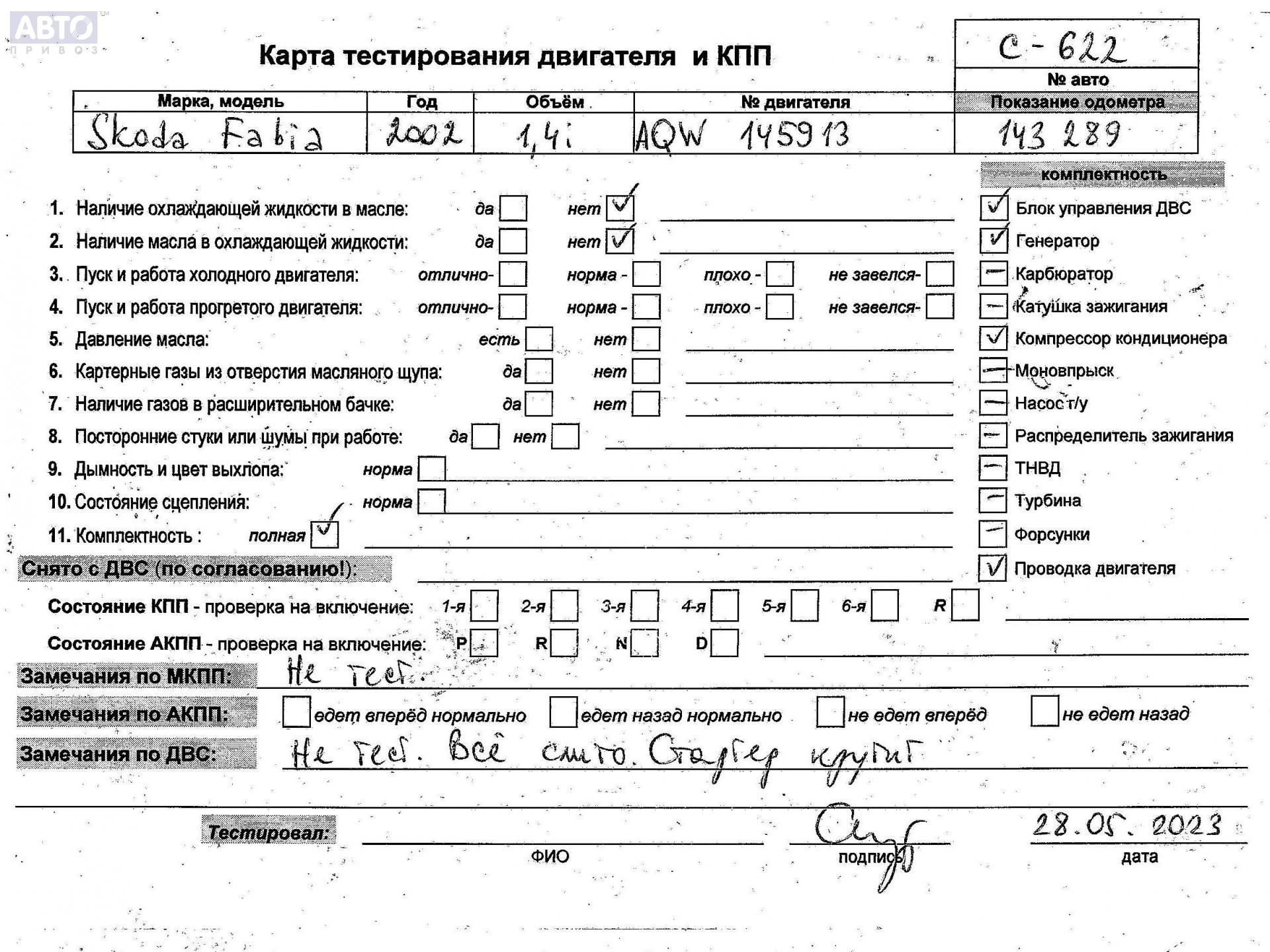 | Марка / Модель / Год: | Skoda Fabia mk1 (6Y) 2002 |