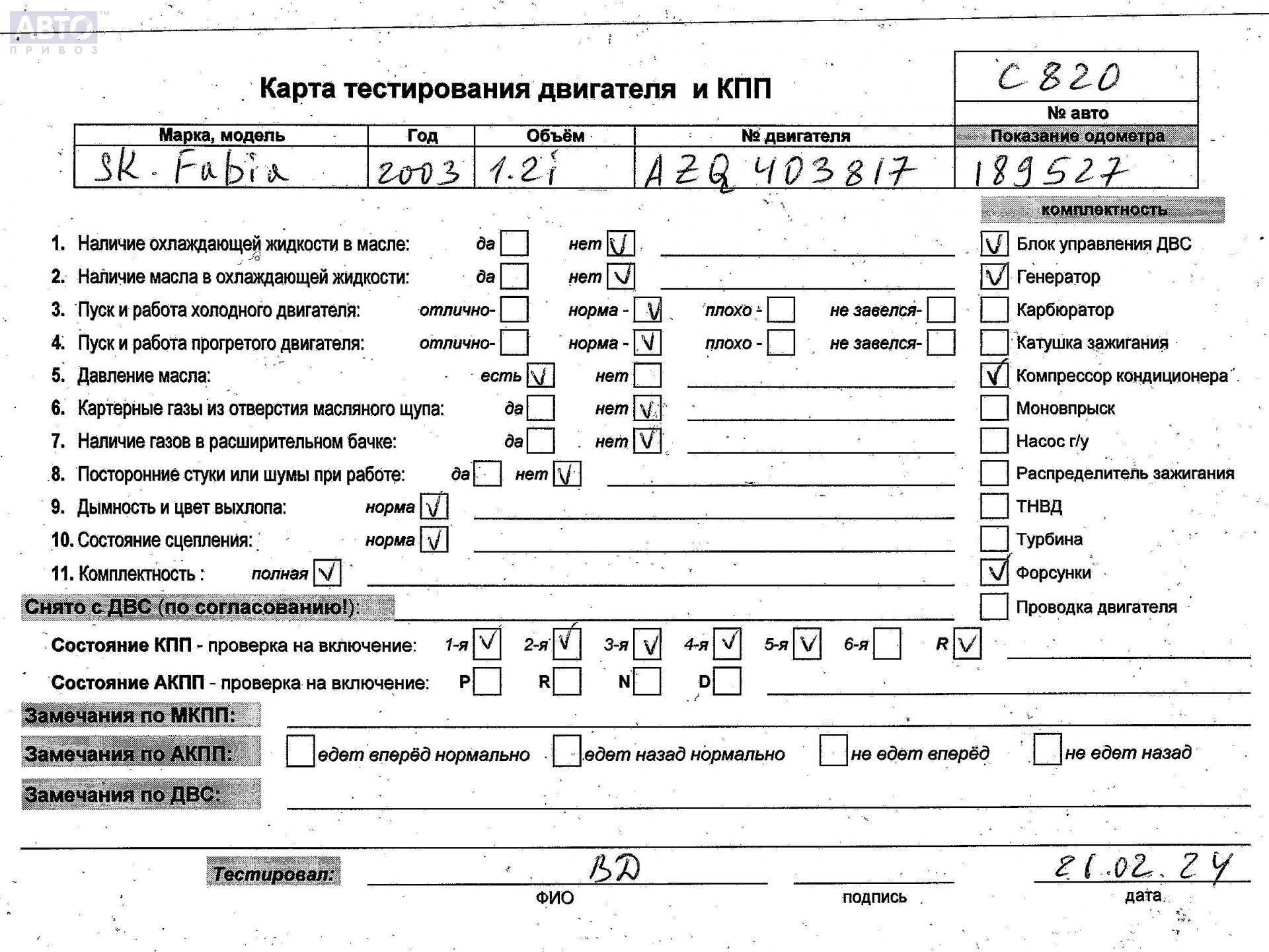 | Марка / Модель / Год: | Skoda Fabia mk1 (6Y) 2003 |