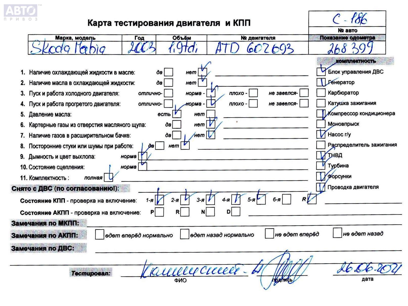 | Автомобиль / VIN: | C0186 TMBJS26Y243957516 |