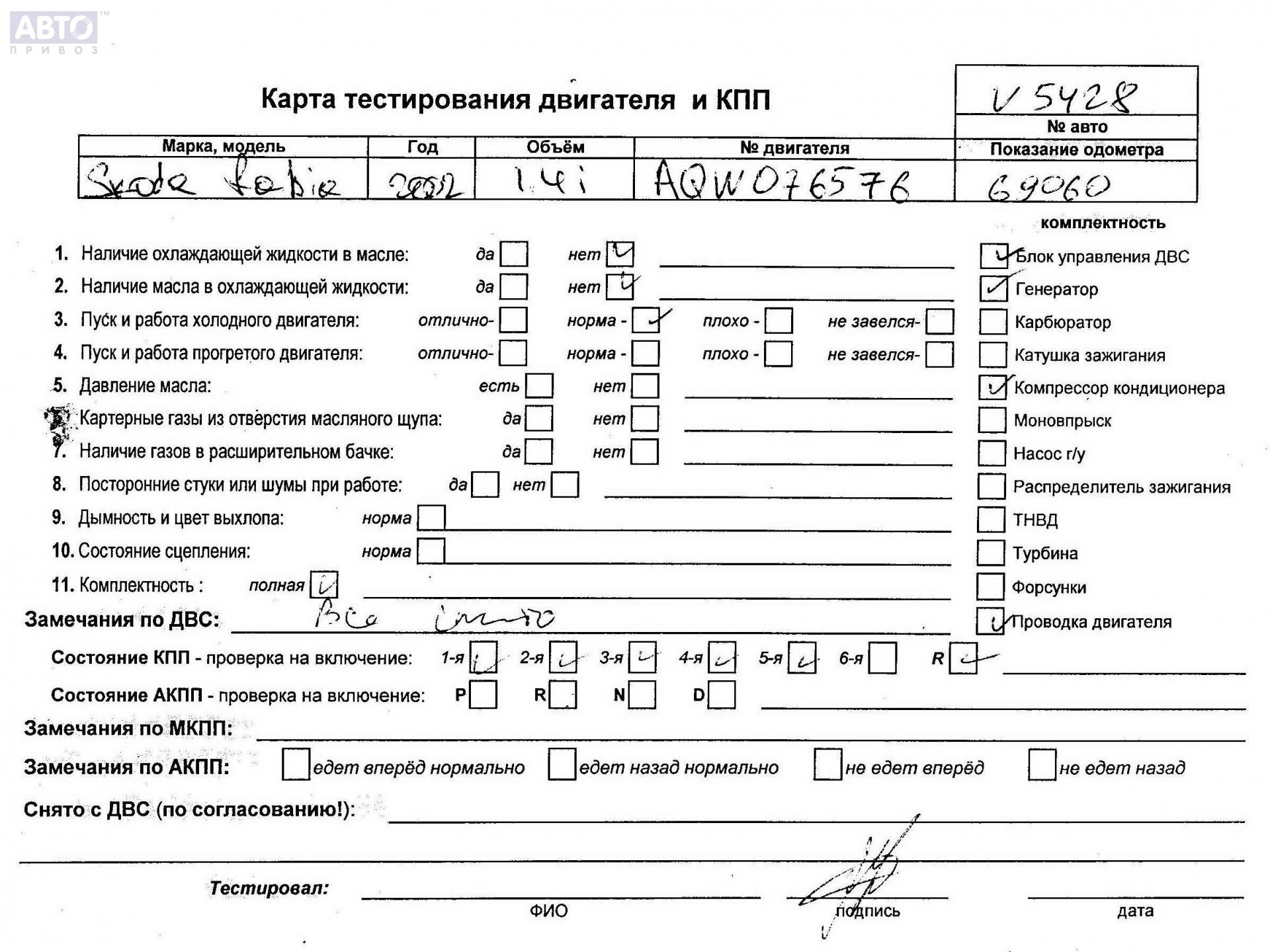 | Марка / Модель / Год: | Skoda Fabia mk1 (6Y) 2002 |
