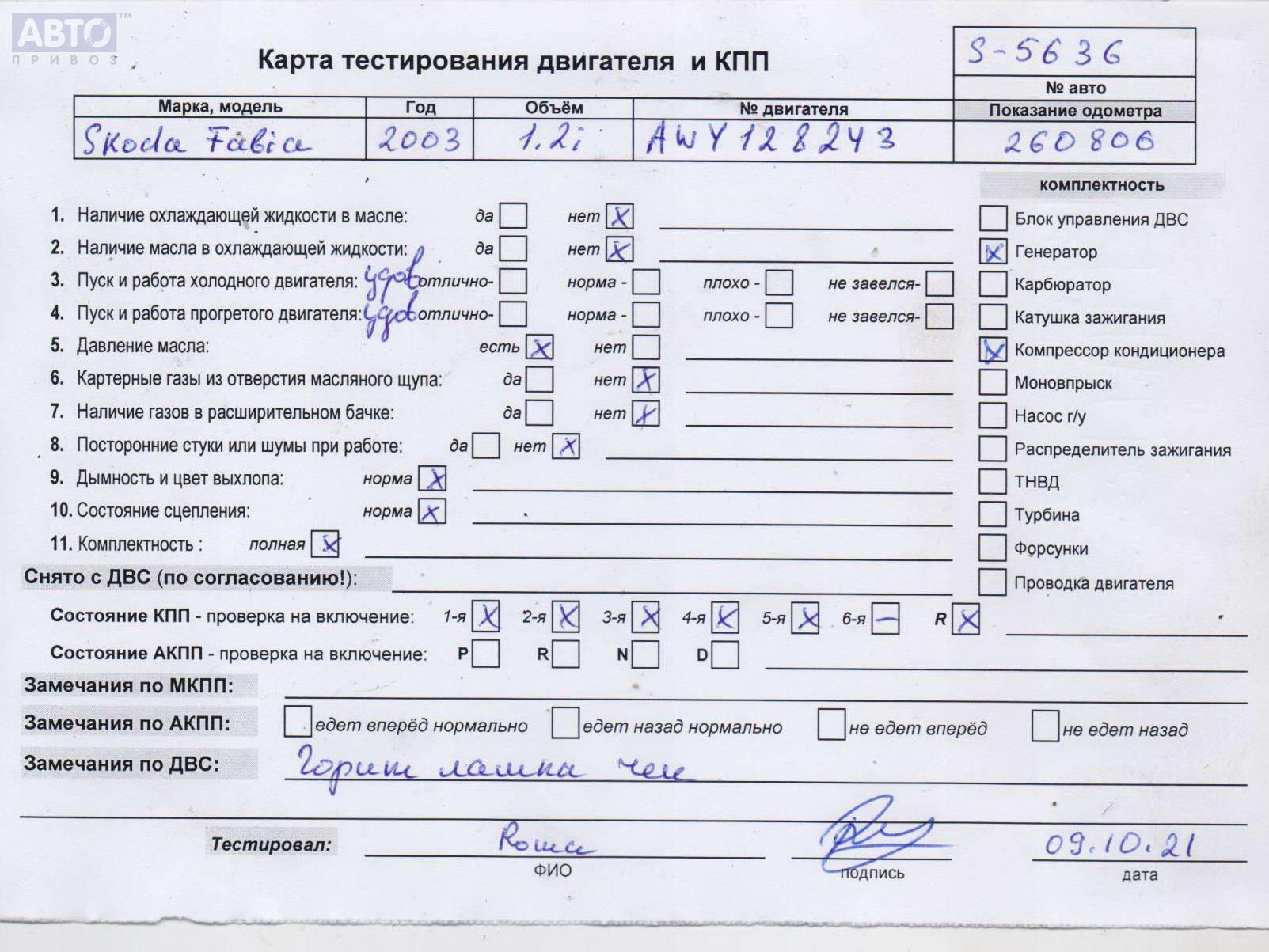 | Марка / Модель / Год: | Skoda Fabia mk1 (6Y) 2003 |