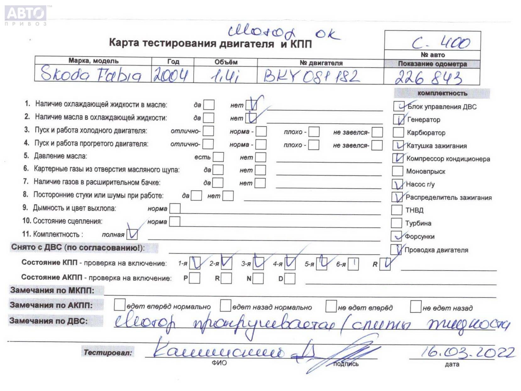 | Автомобиль / VIN: | C0400 TMBNC26Y154252541 |