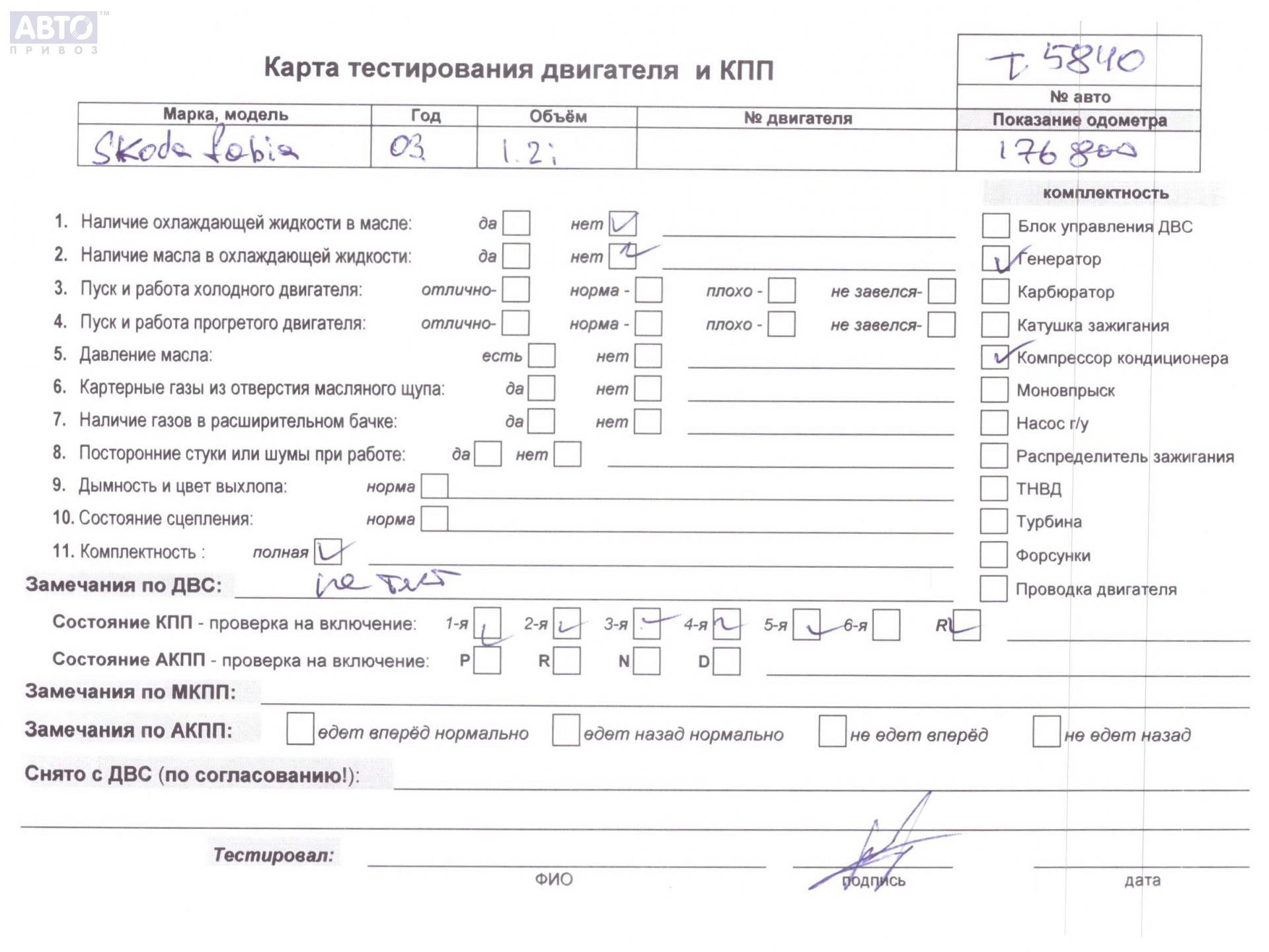 | Марка / Модель / Год: | Skoda Fabia mk1 (6Y) 2003 |