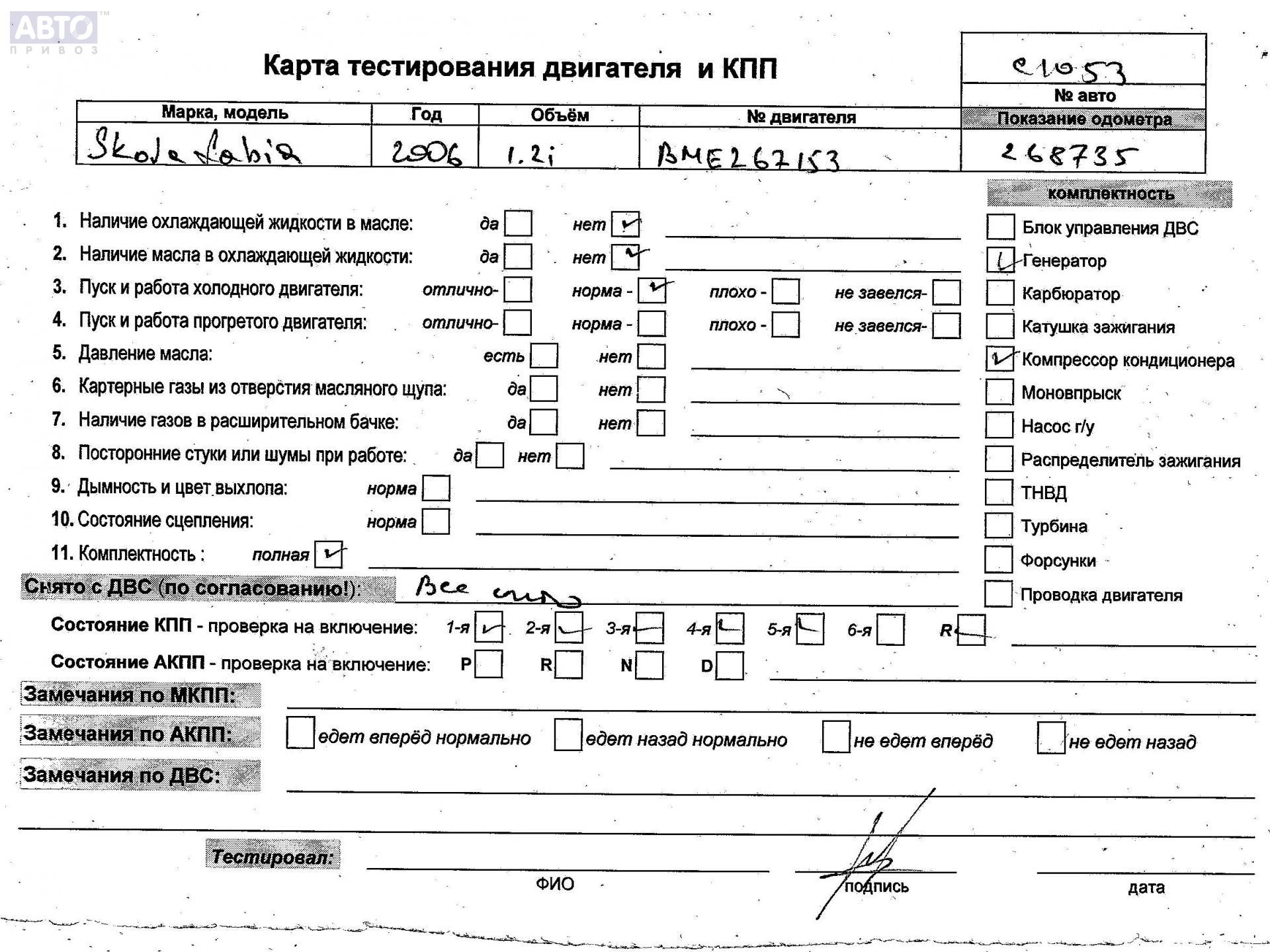 | Марка / Модель / Год: | Skoda Fabia mk1 (6Y) 2006 |