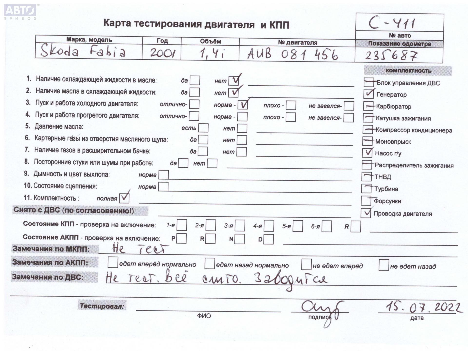 | Марка / Модель / Год: | Skoda Fabia mk1 (6Y) 2001 |