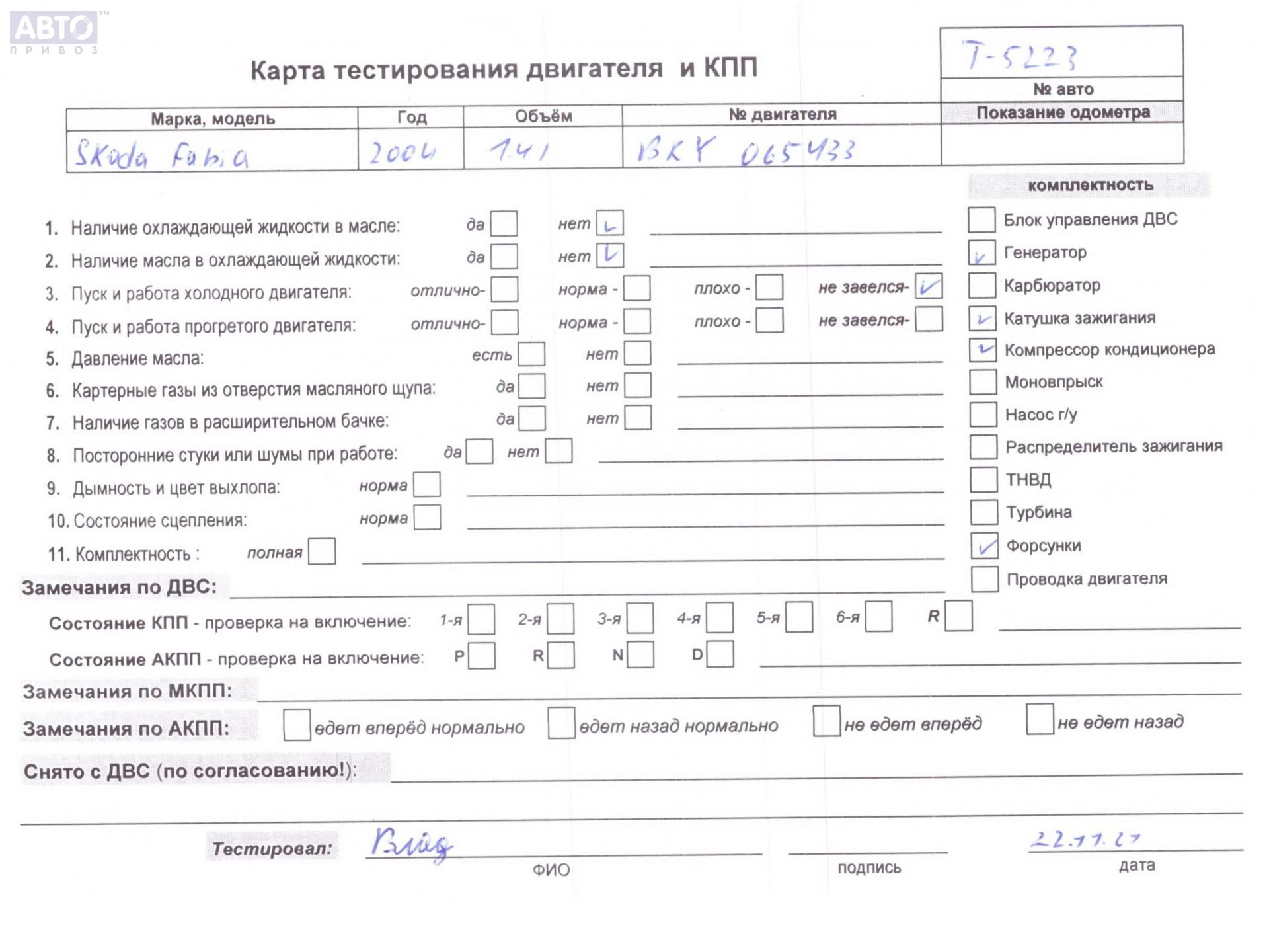 | Марка / Модель / Год: | Skoda Fabia mk1 (6Y) 2004 |