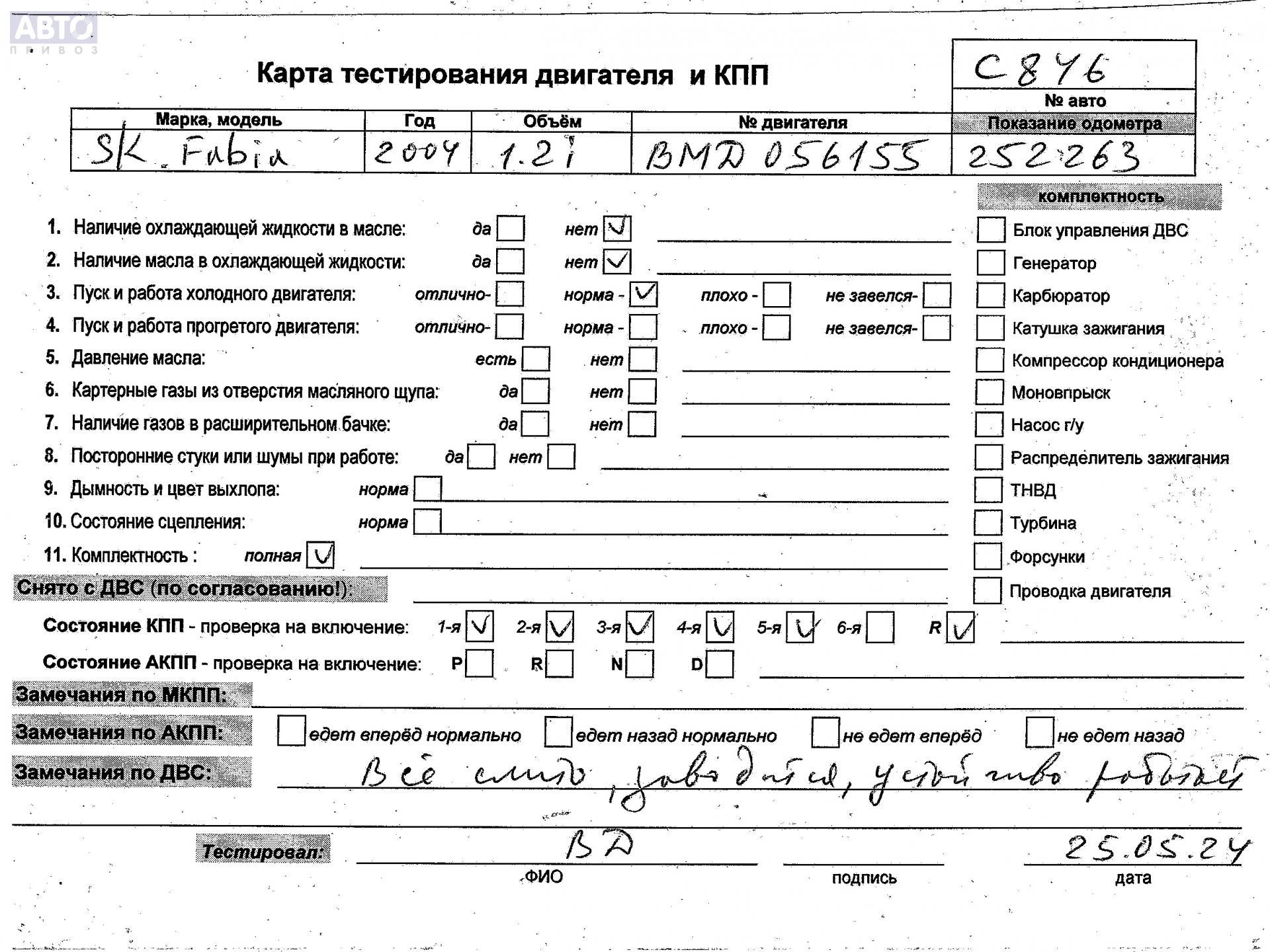 | Марка / Модель / Год: | Skoda Fabia mk1 (6Y) 2005 |
