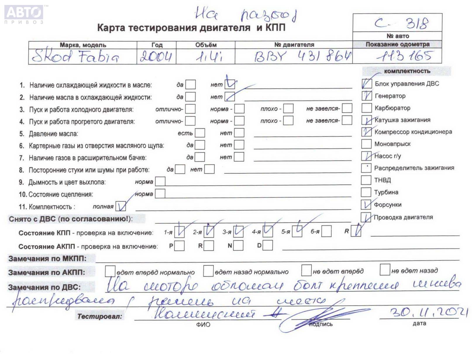 | Автомобиль / VIN: | C0318 TMBNC26Y944018615 |