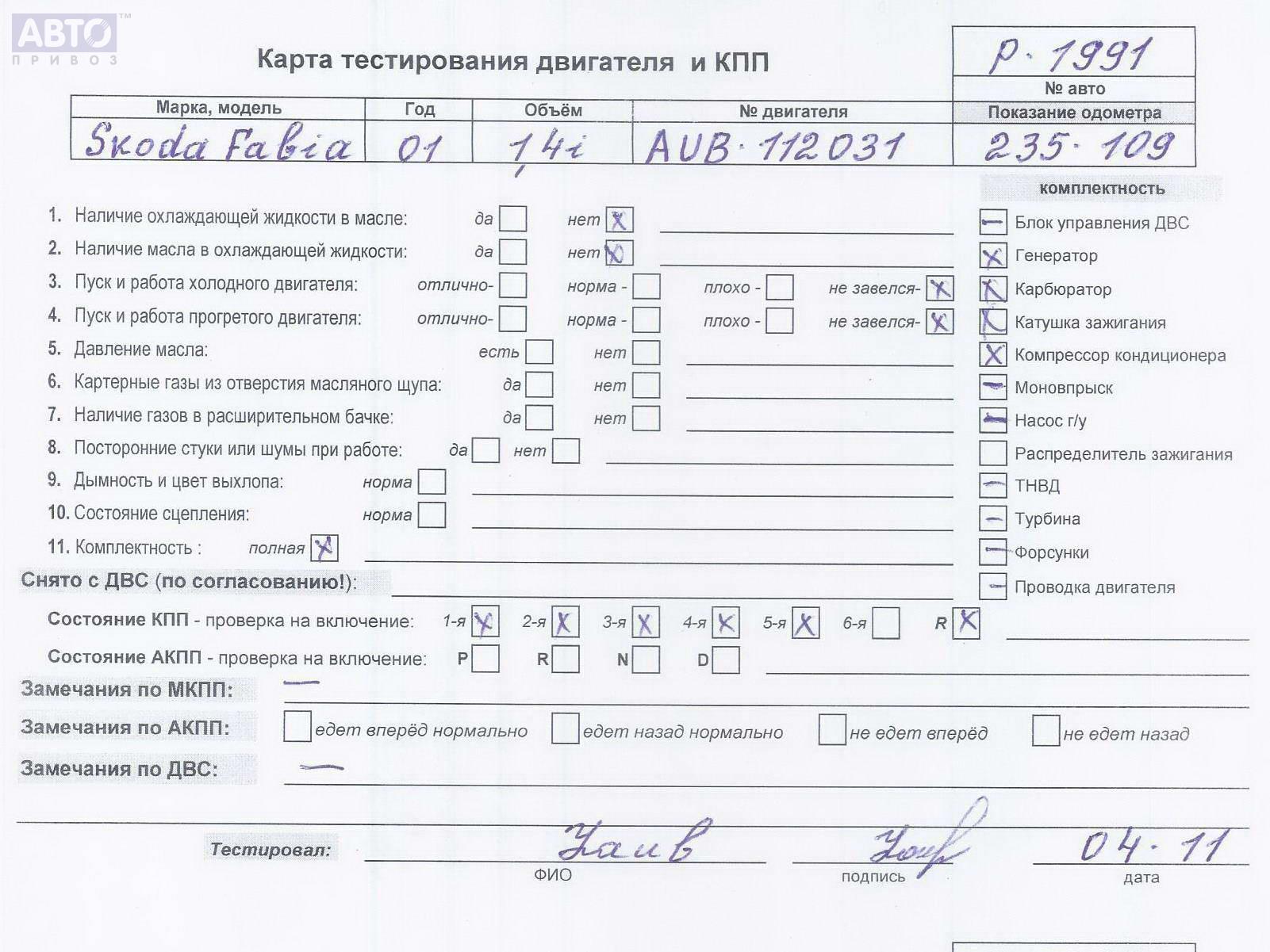 | Автомобиль / VIN: | P1991 TMBHD26Y223424927 |