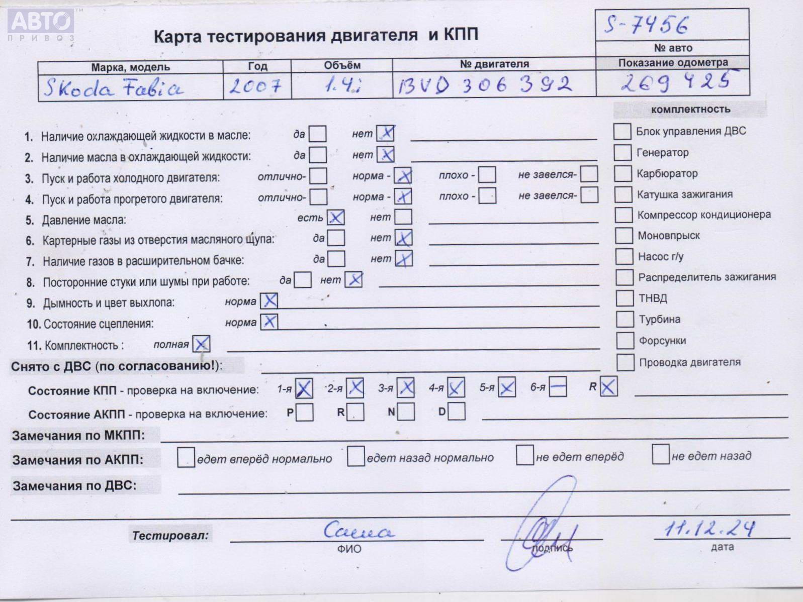 | Автомобиль / VIN: | S7456 TMBJX26Y774158606 |