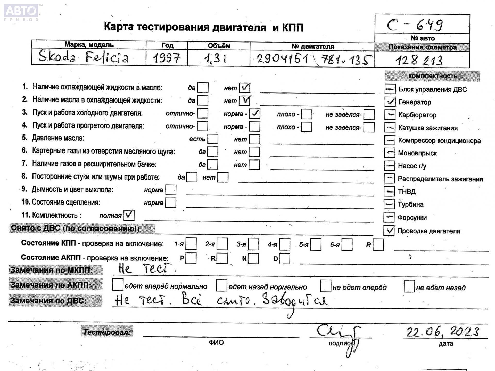 | Марка / Модель / Год: | Skoda Felicia 1997 |