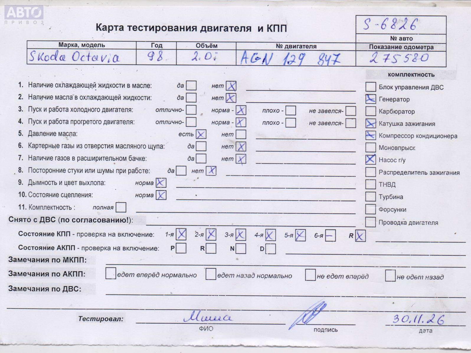| Автомобиль / VIN: | S6826 TMBZZZ1U9X2152313 |