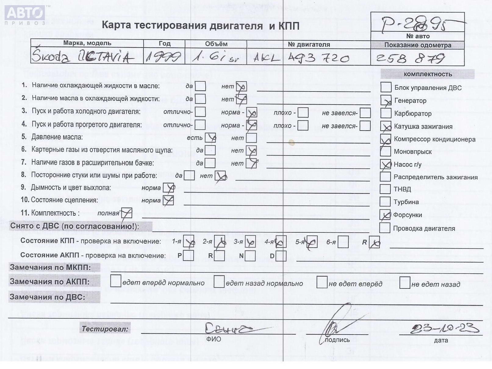 | Автомобиль / VIN: | P2895 TMBBK21U0Y2276176 |